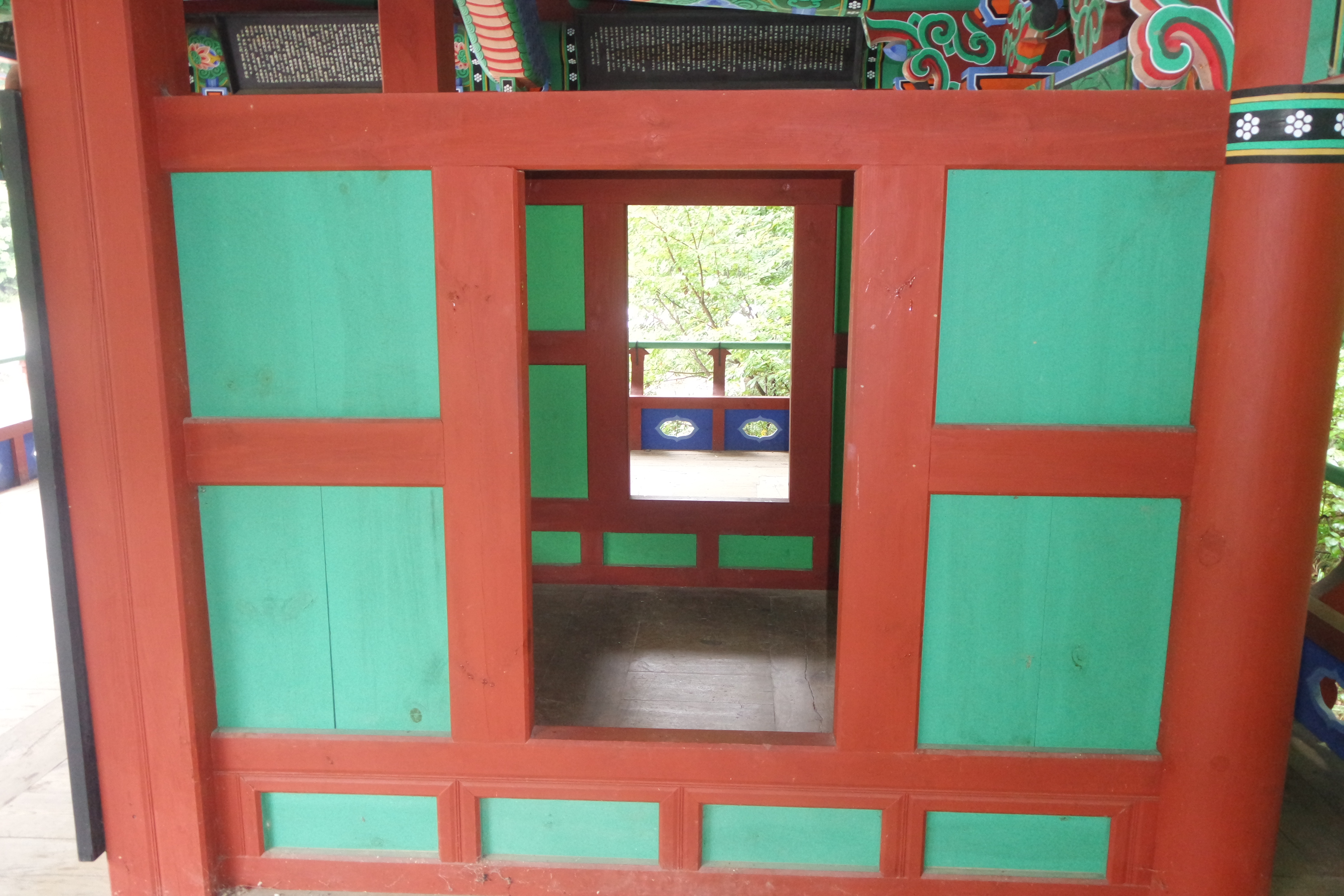 주련이 걸린 뒷편가운데 한 칸짜리 바람막이 작은 방.