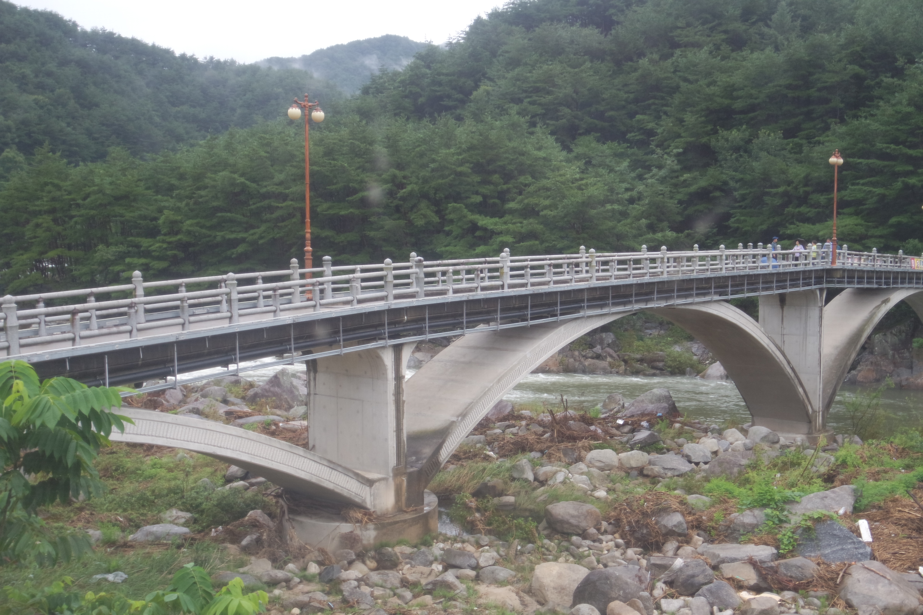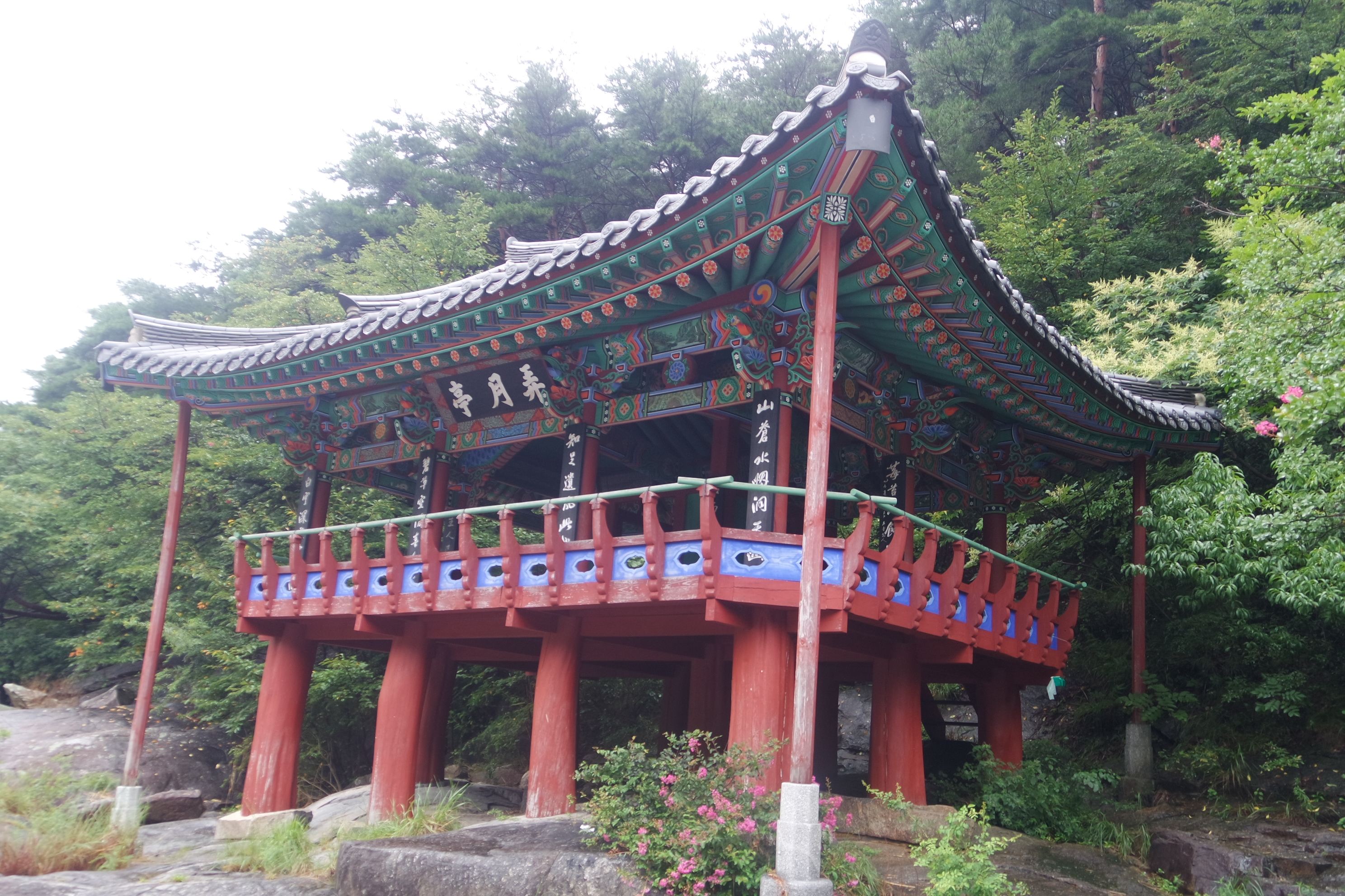 창밖에는 이제 비가 그친 상태 잠시 후 농월교를 건너 농월정 으로 갈 예정이다.