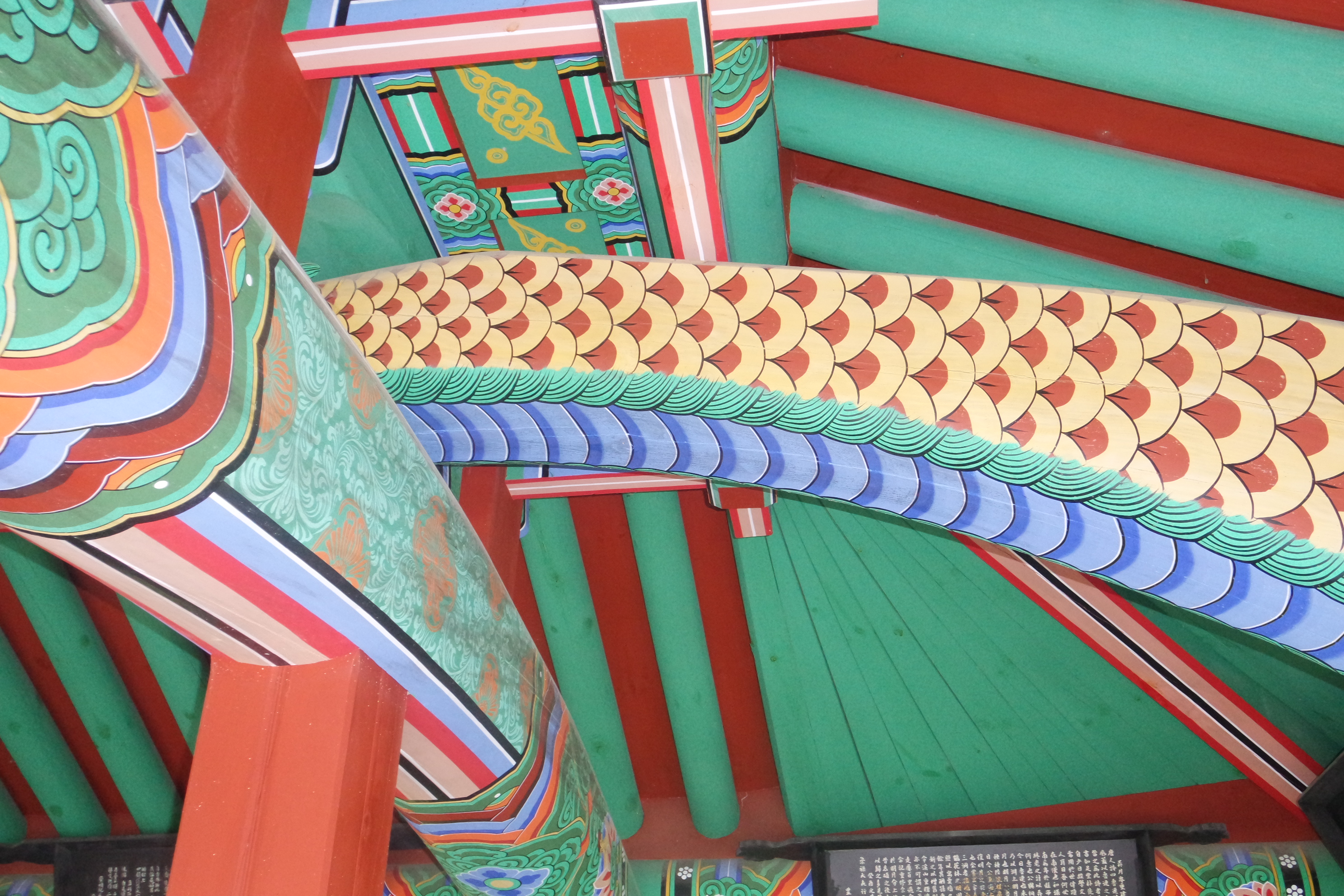 천정의 두마리 용이 마주보고 있다.