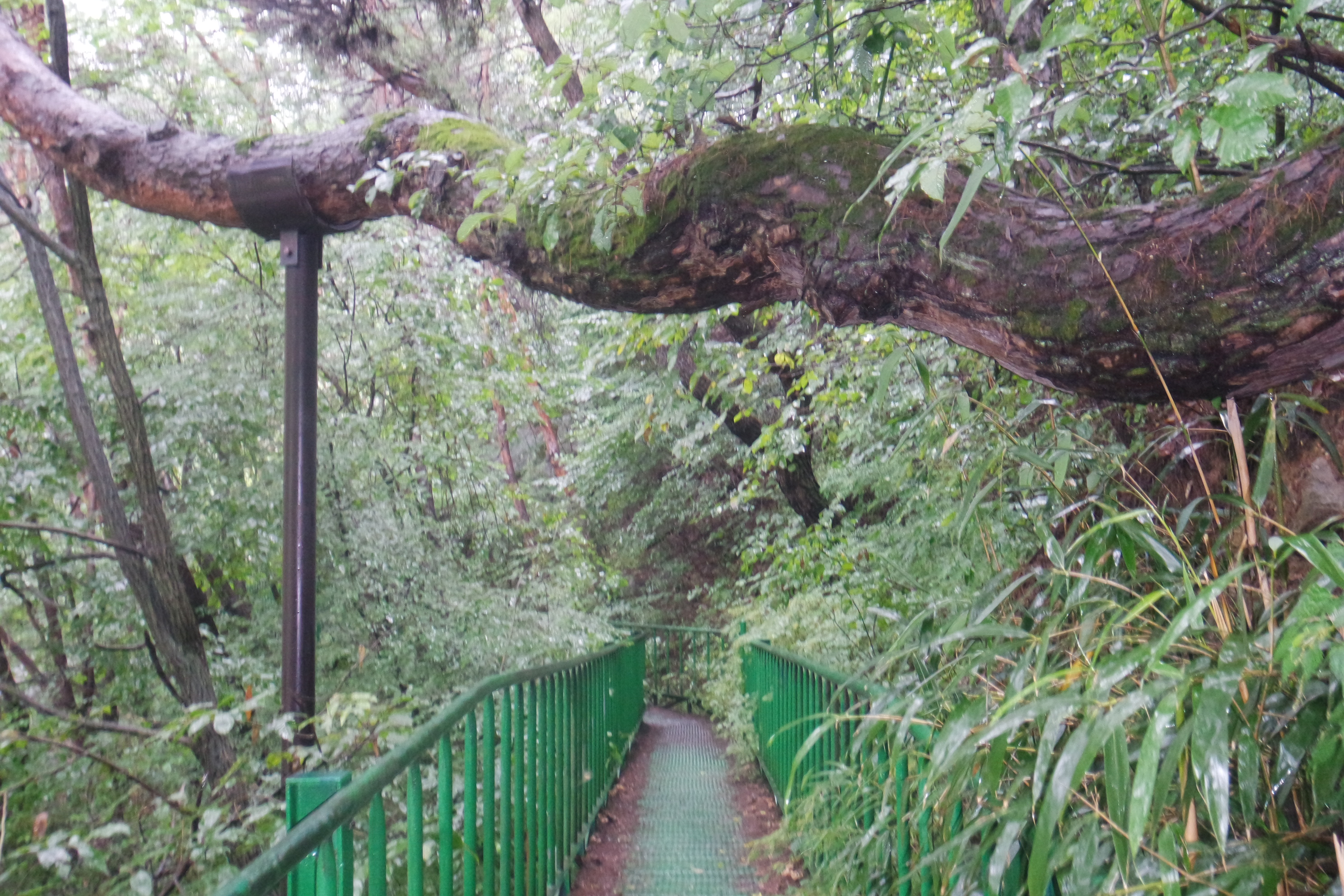나무사이의 철제 계단.