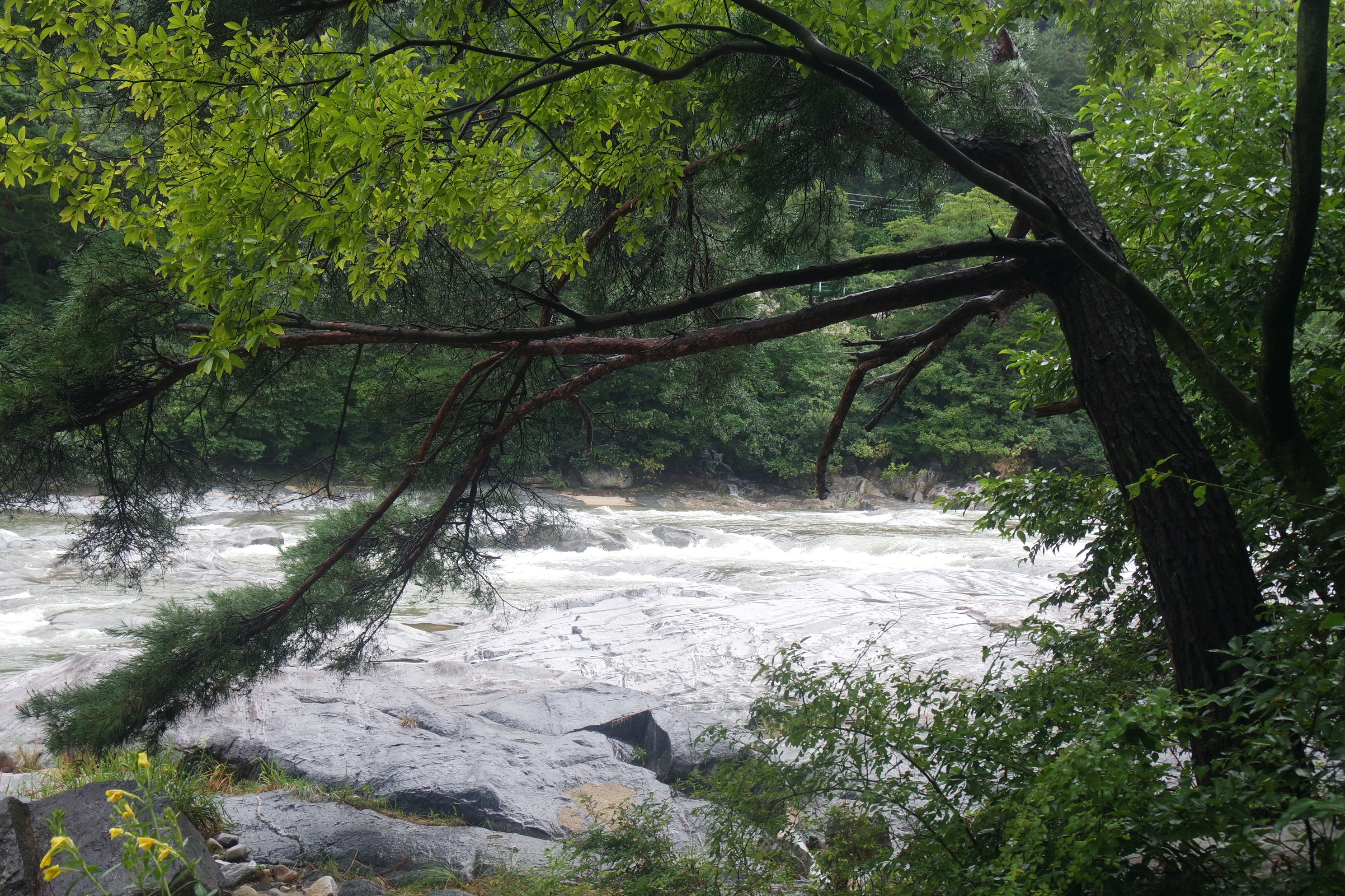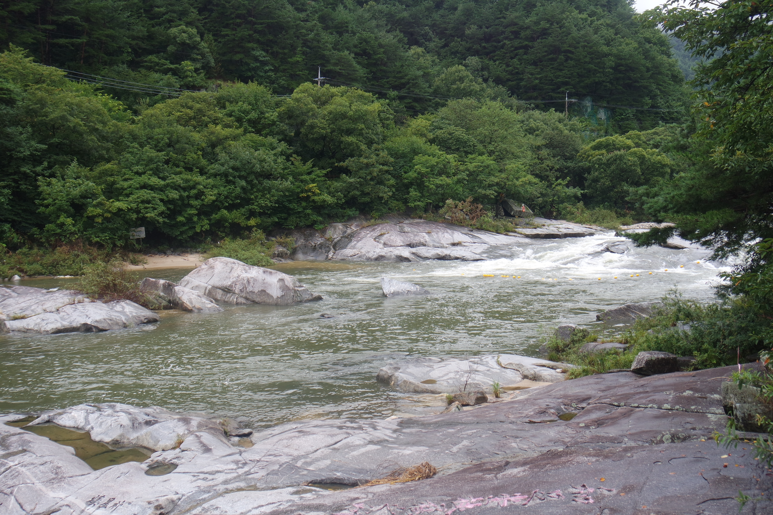 계곡수가 힘차게 흘려 내려가면서 바위에 새긴 선현들의 글씨도 잠겨버려 아쉽다.