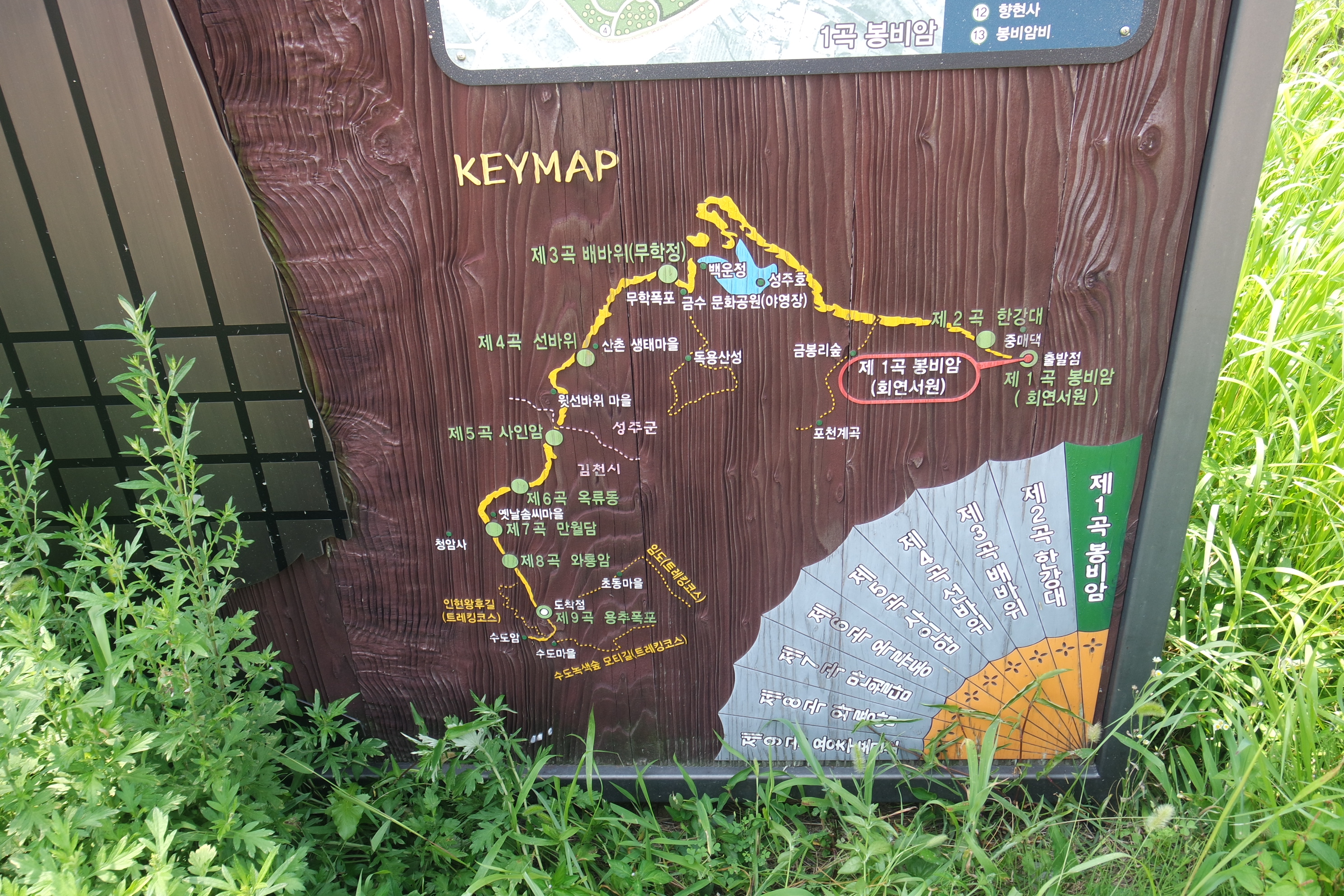 무휼구곡은 총 35km 정도의 경북성주와 김천까지의 이어져 있으며, 1곡-4곡은 성주군. 5곡-9곡은 김천시에 위치