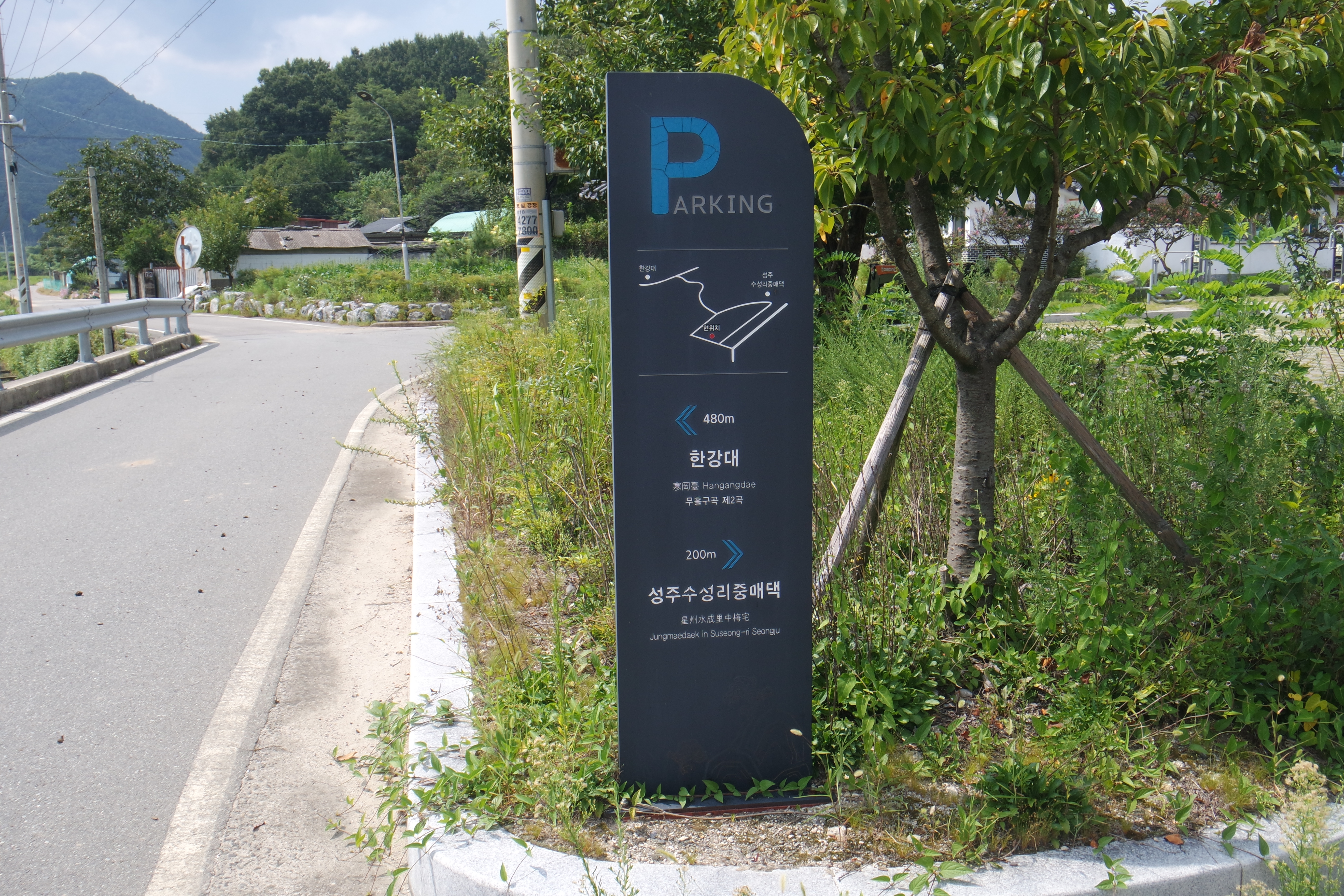 갖말 마을 입구의 한강대 주차장.