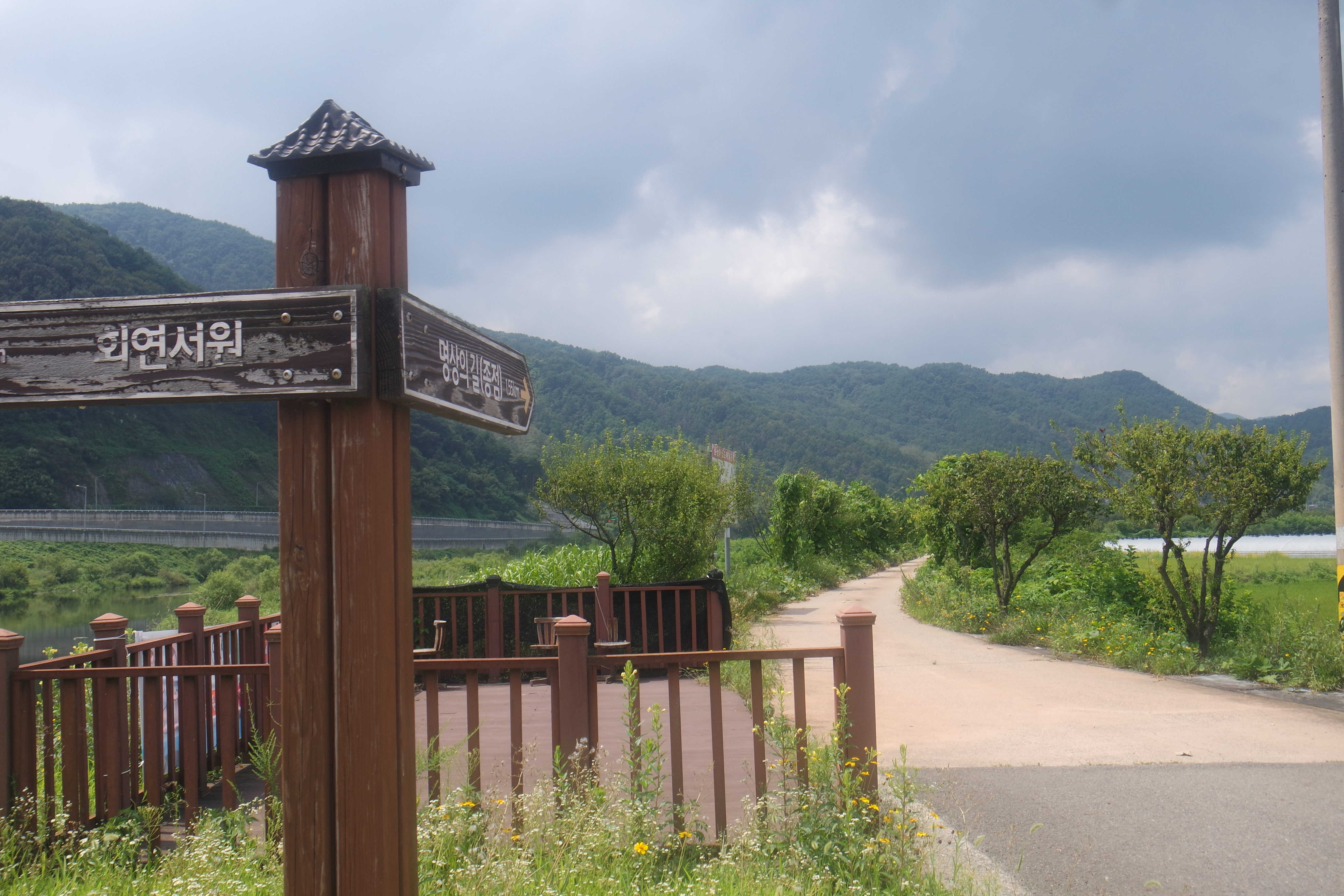 명상의 길 종점 이정표에서 제방따라 이동.