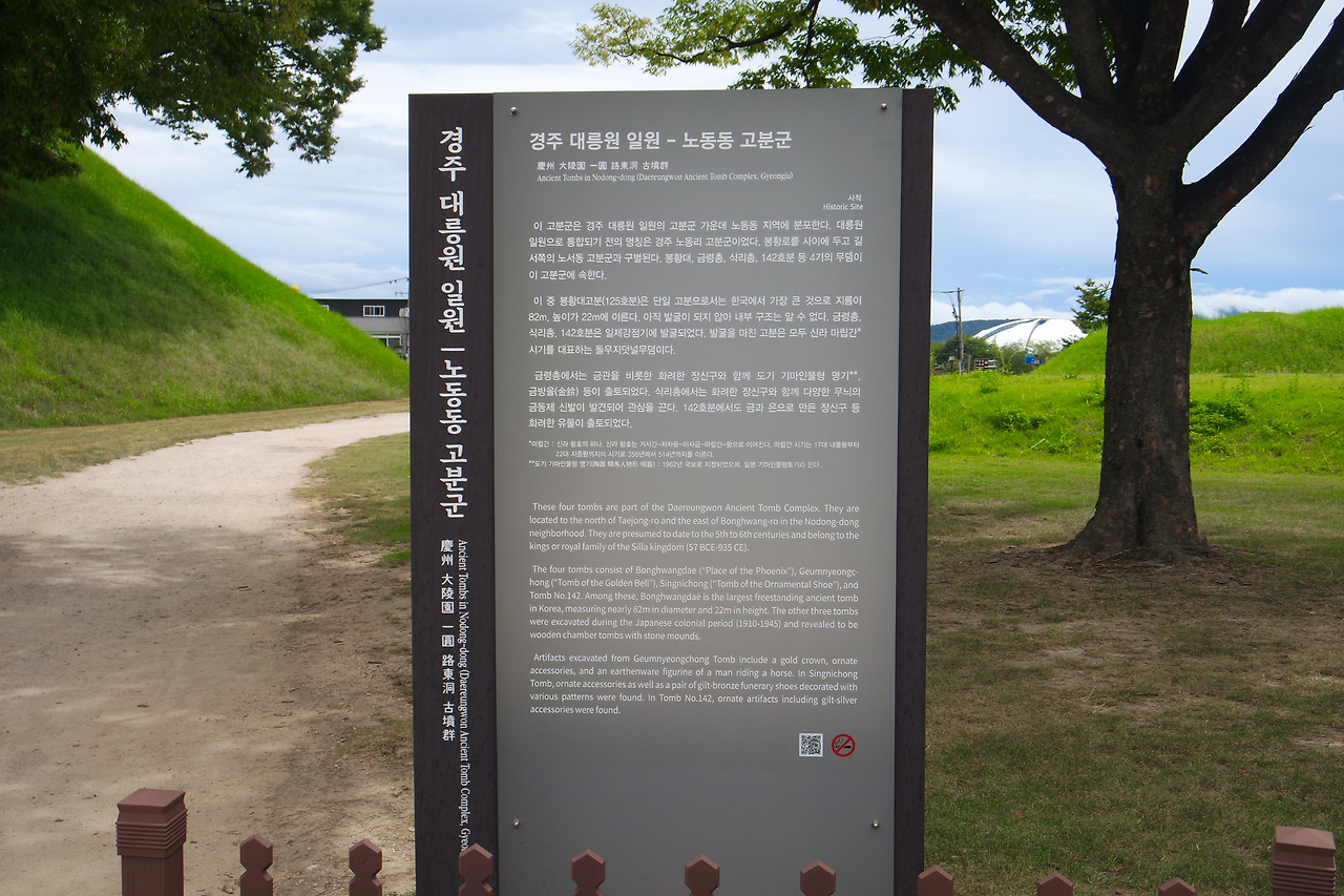 봉황대고분(125호), 단일고분에서는 한국에서 제일 크다(지름 82m 높이 22m) 발굴이 안된 상태.