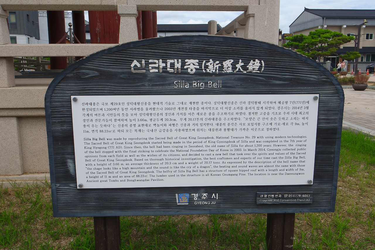 성덕대왕신종을 현대적 기술로 제현한 모습의 신라대종 안내문.