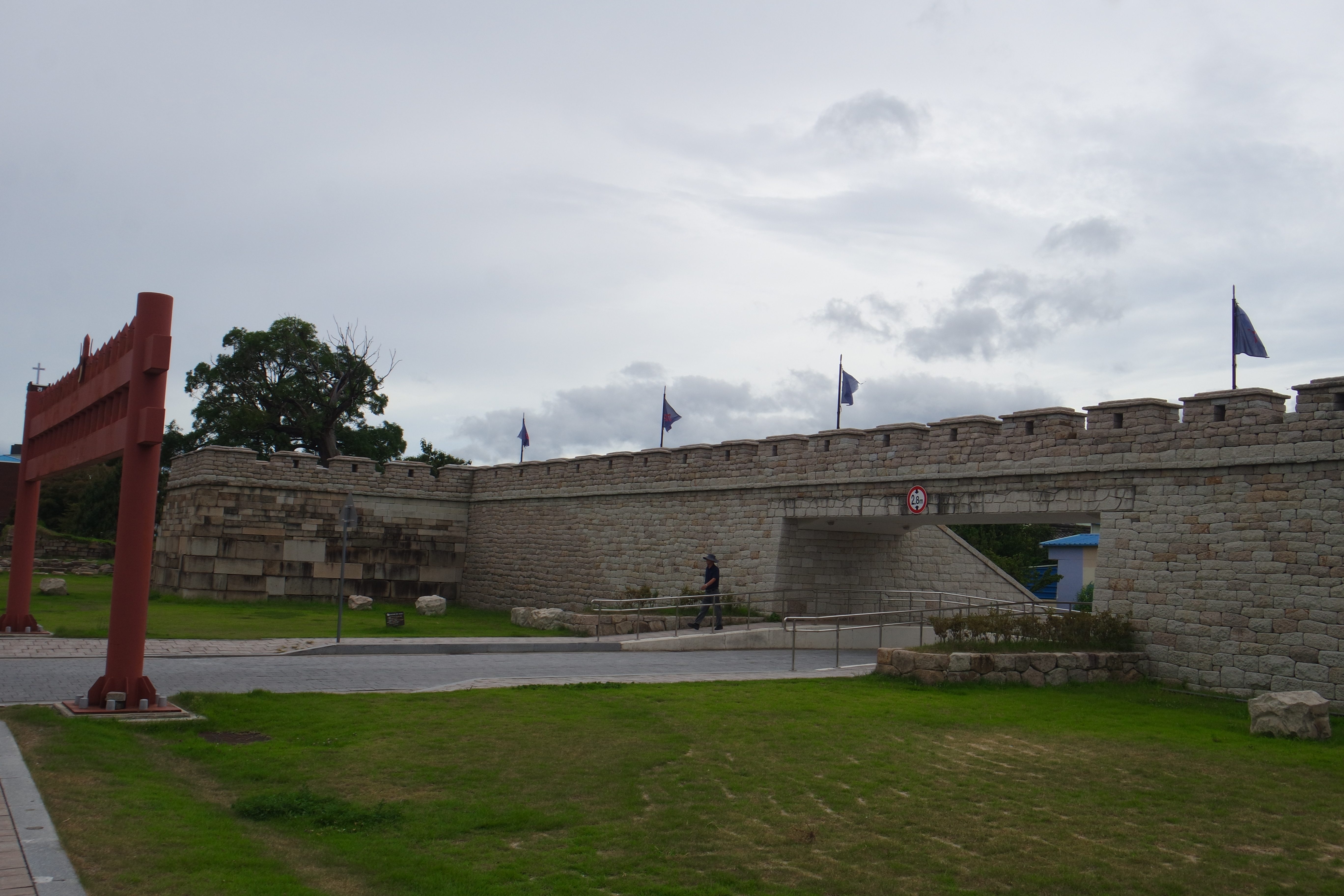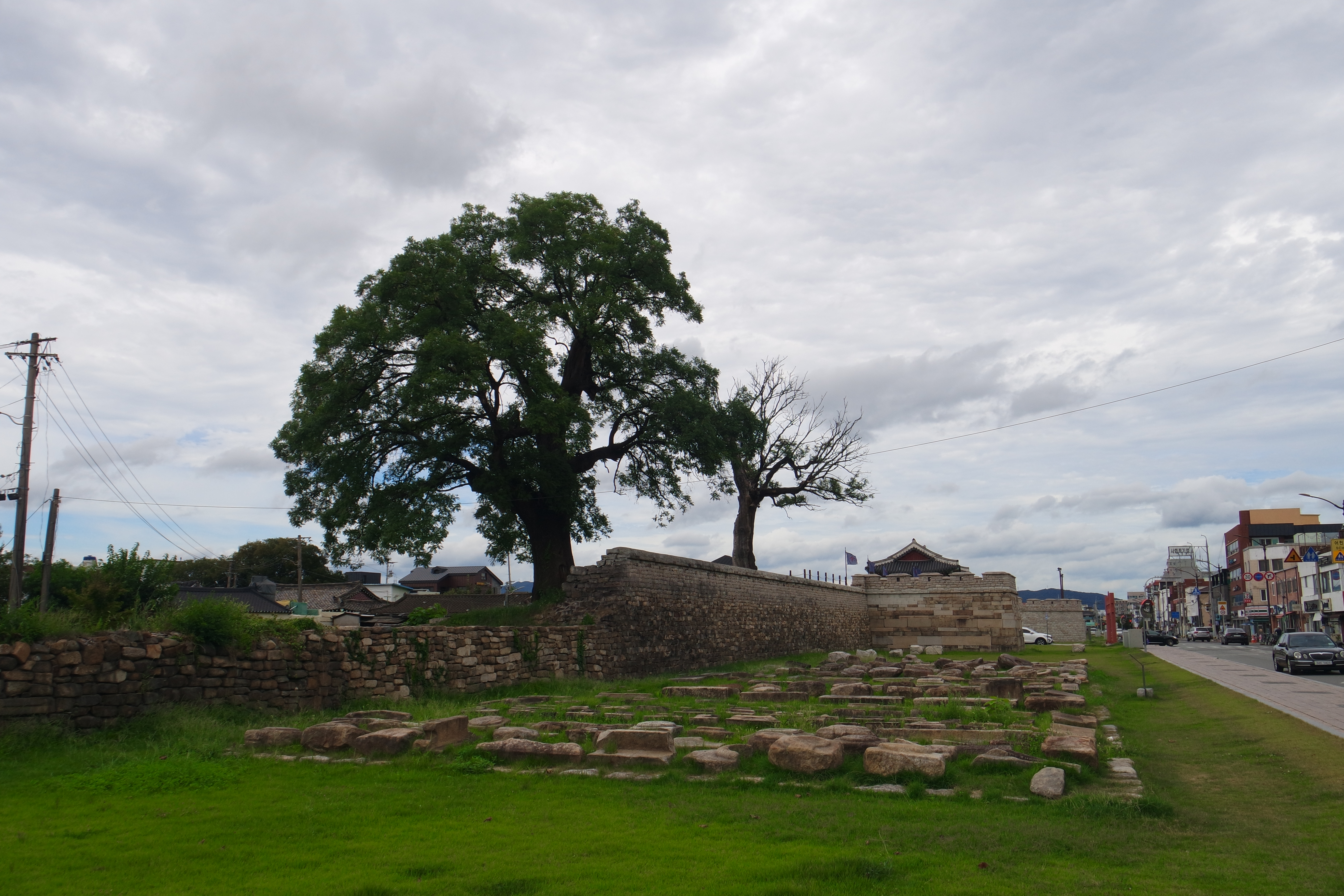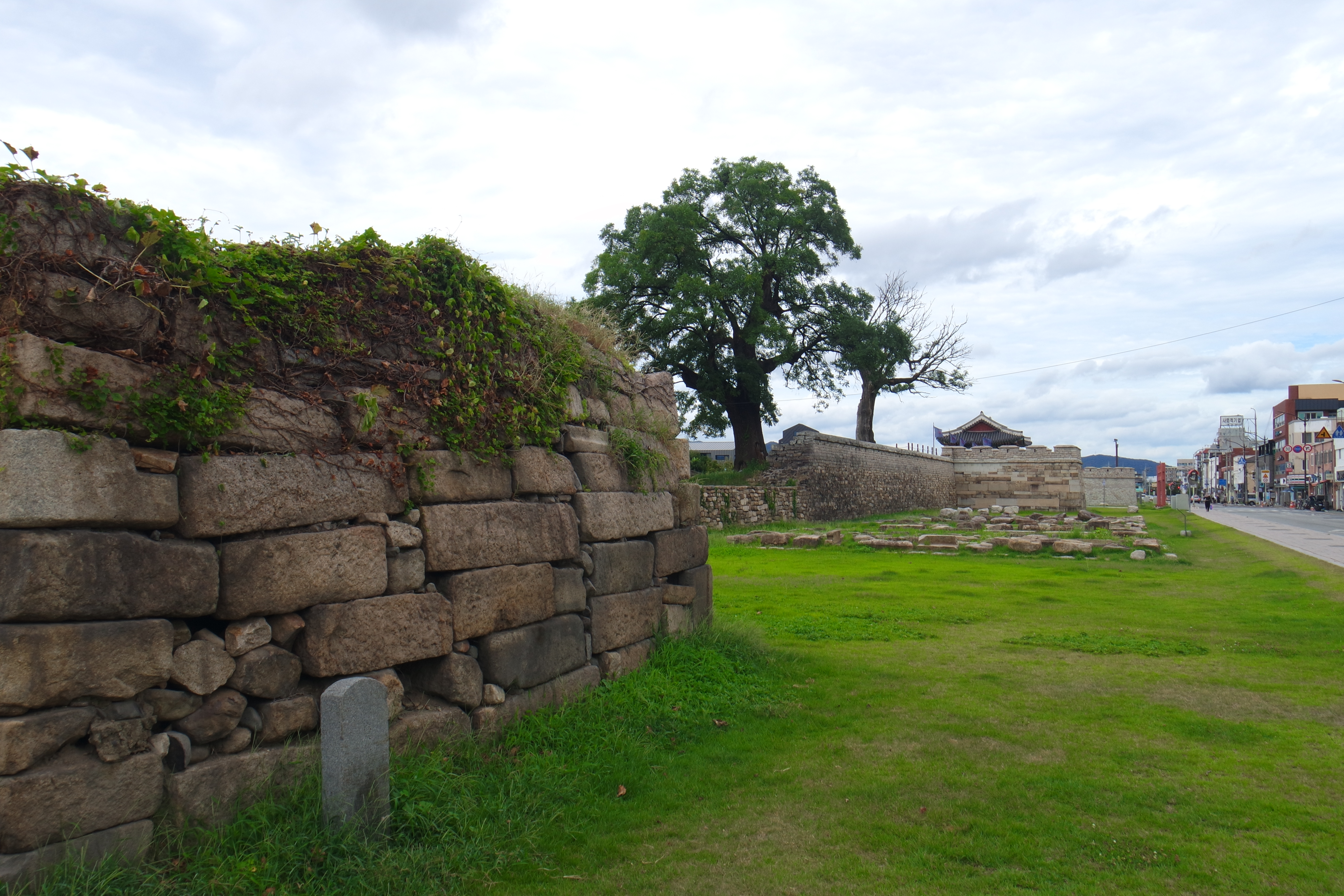 적의 성문공격장비의 출입을 어렵게 하여 성문(향일문)을 보호하기 위해 설치한 성곽인 옹성.