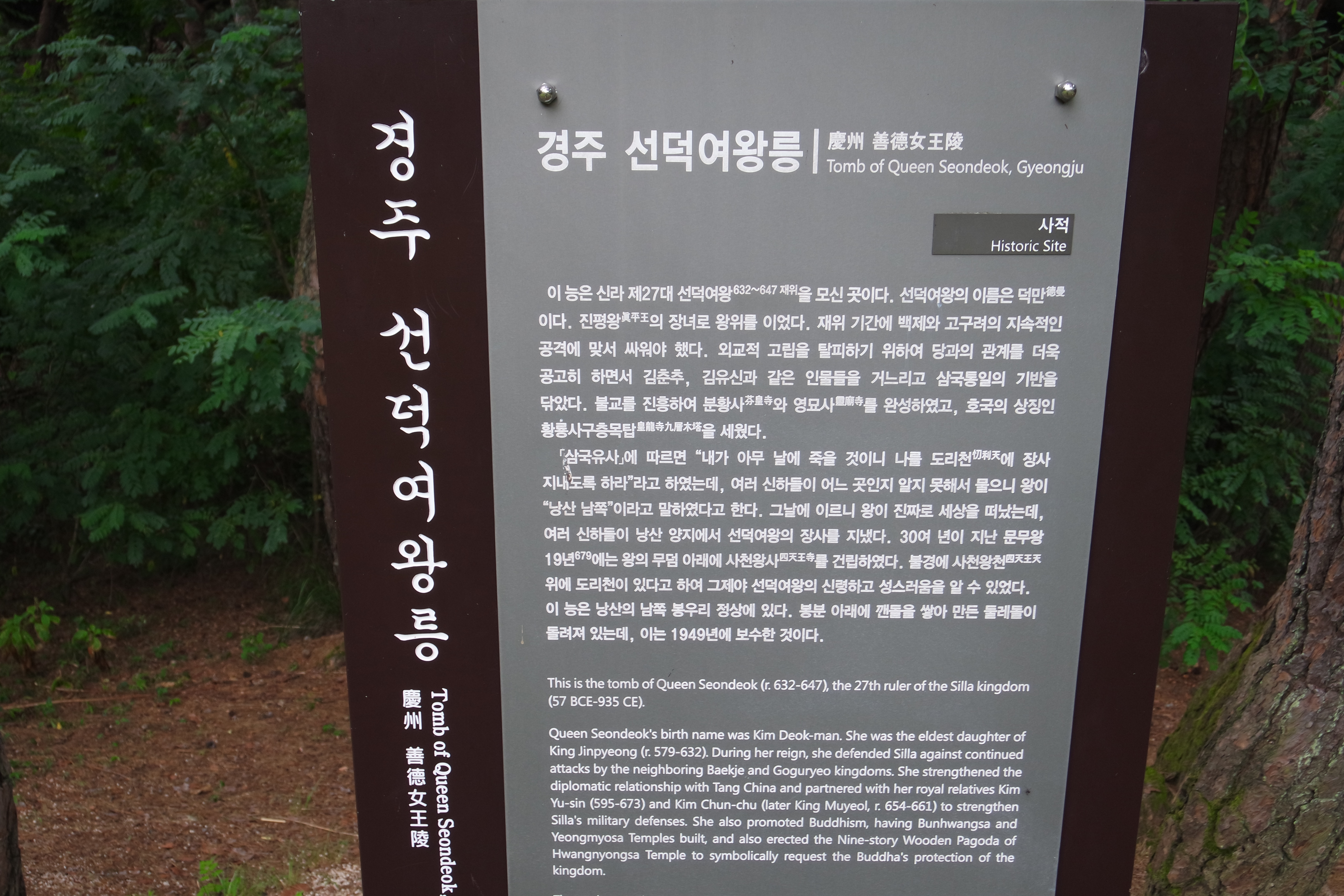 선덕여왕릉 안내문.