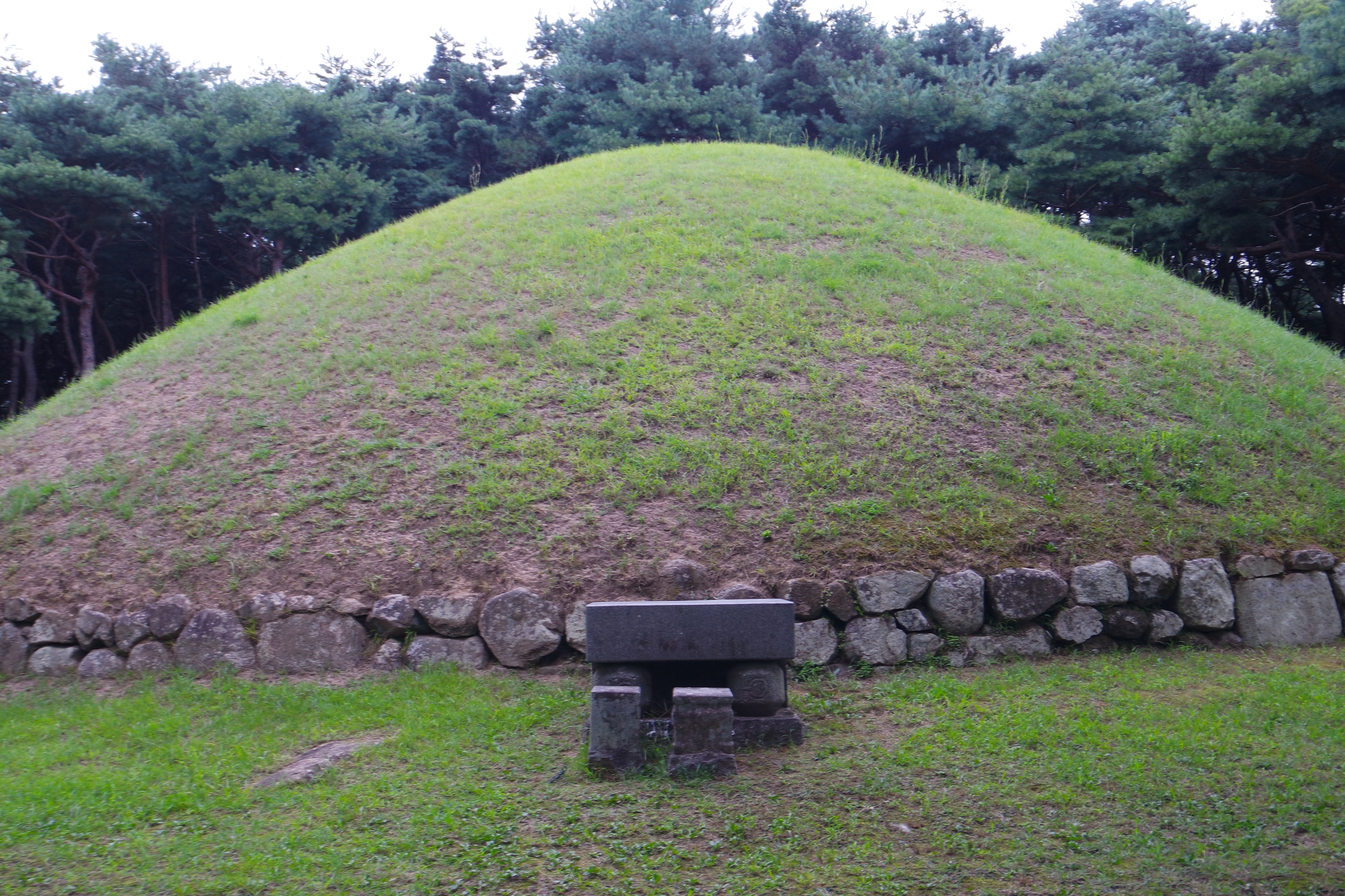 왕릉의 외부모습은 흙으로 덮은 둥근 봉토분이다. 밑둘레에는 길이 30∼60㎝ 크기의 자연석을 사용해 2, 3단 쌓아올려 무덤의 보호석렬을 마련하였다.