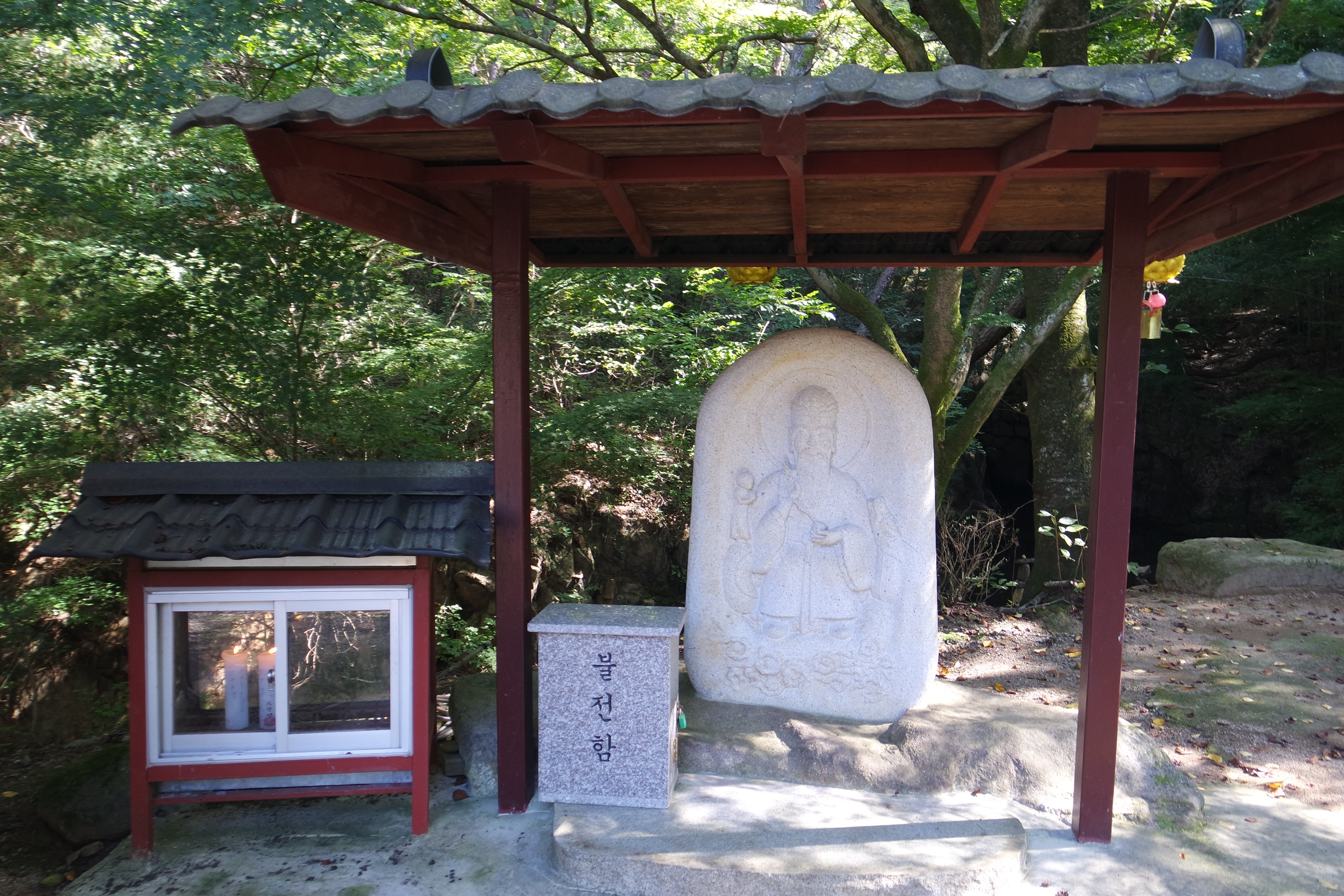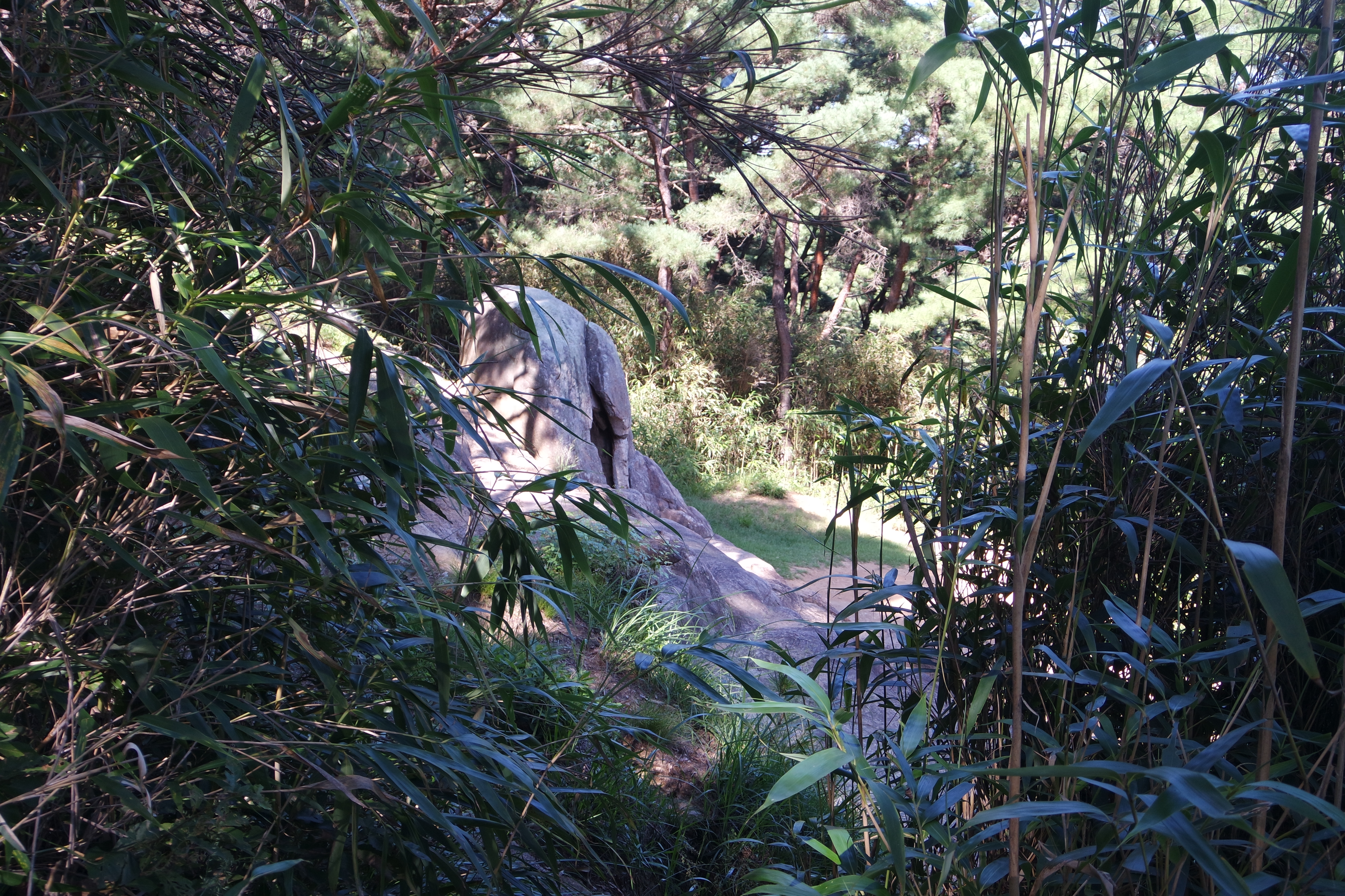 대나무 숲 사이로 바위 감실이 살짝 비친다.