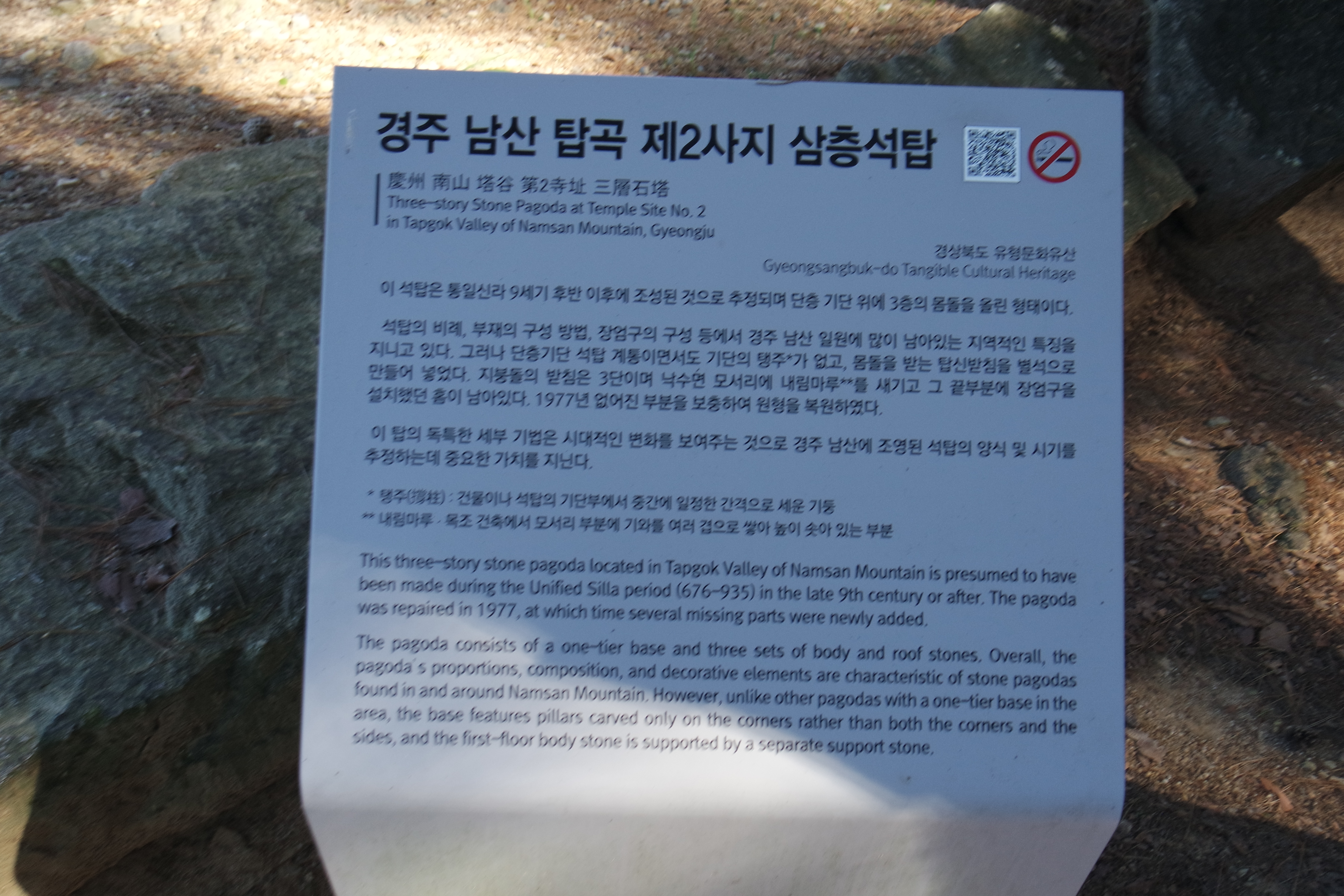 탑곡 제2사지 삼층석탑 안내문.