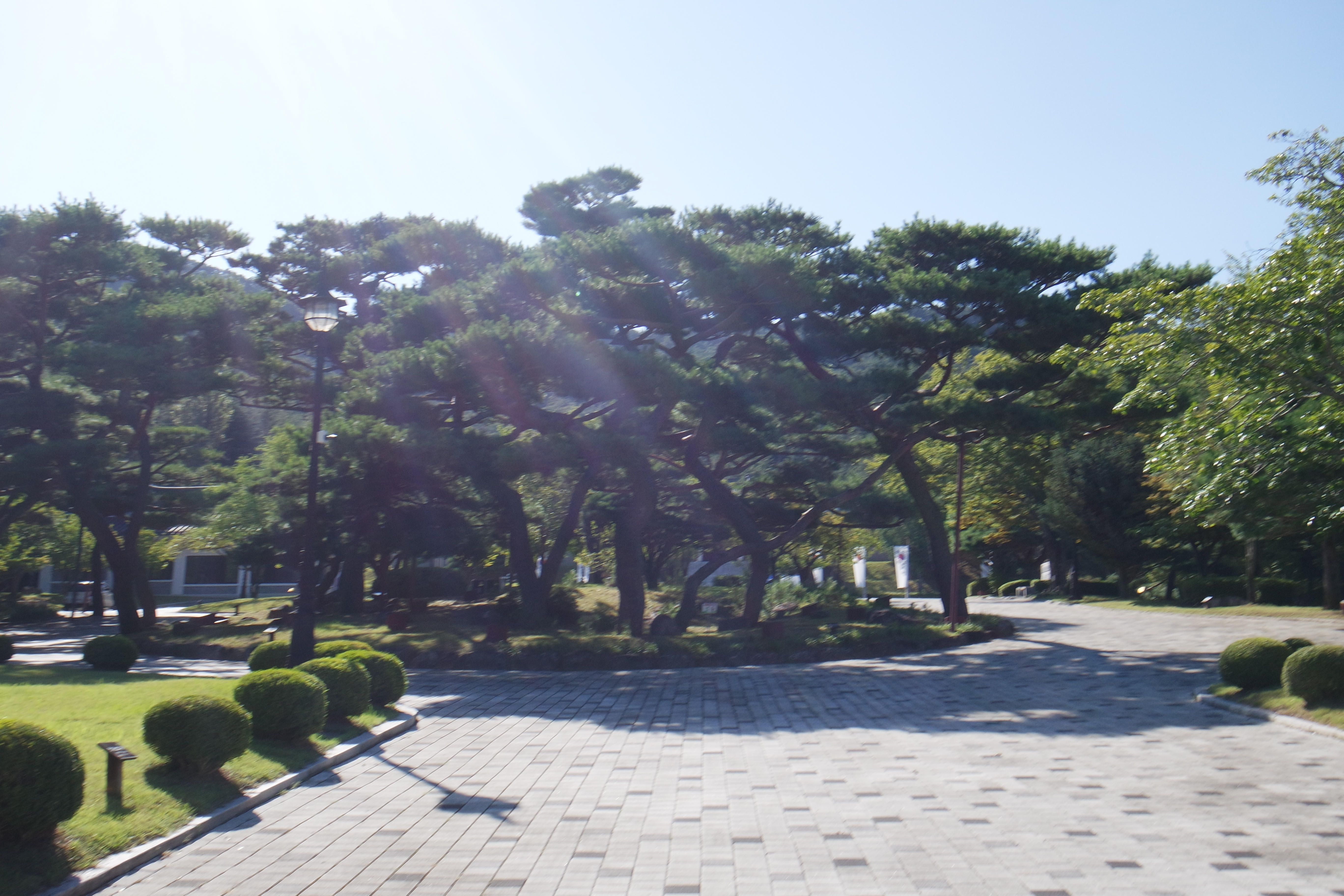 정문으로 들어서니 중앙광장의 소나무.