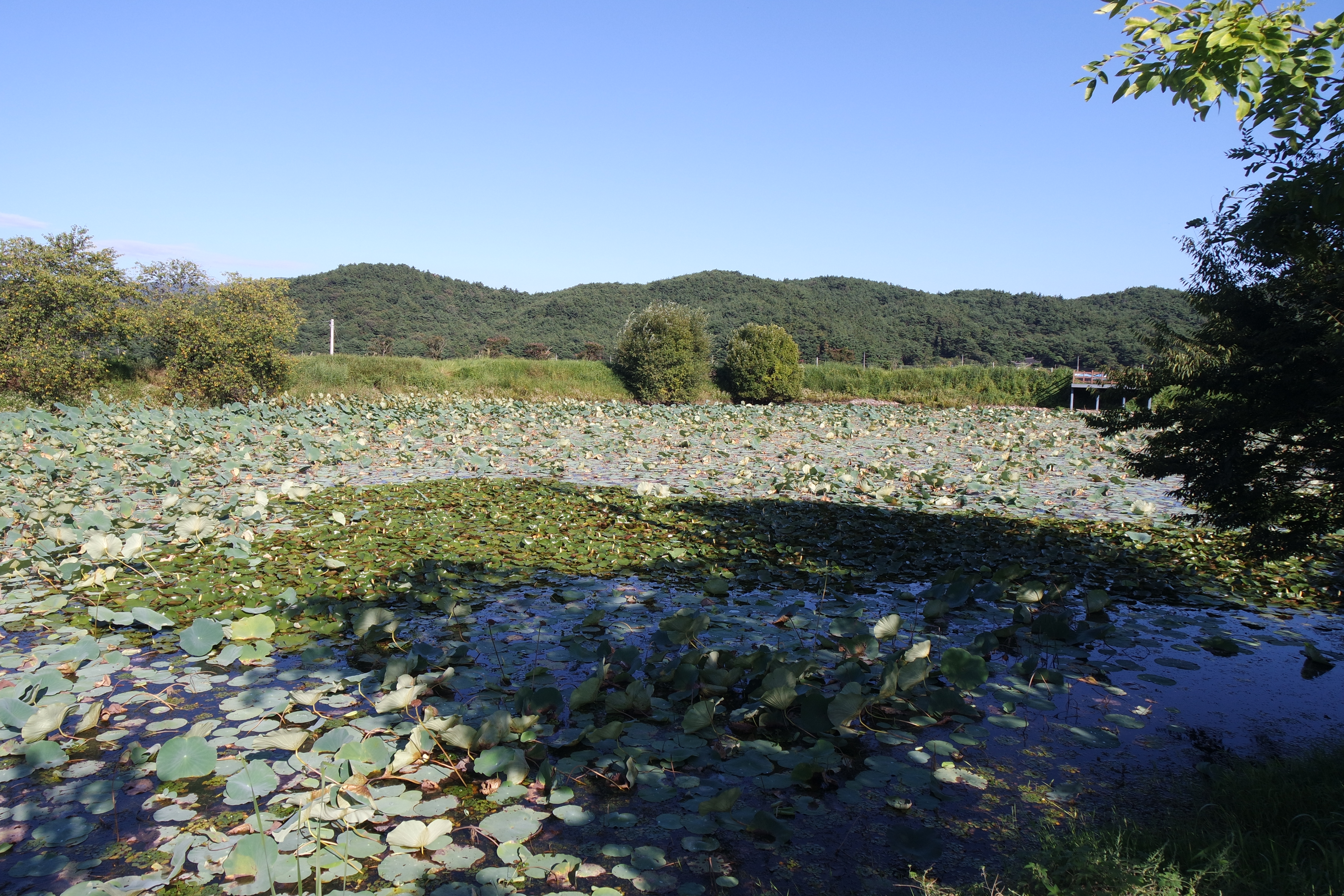 연꽃으로 뒤덮힌 양피 저수지.