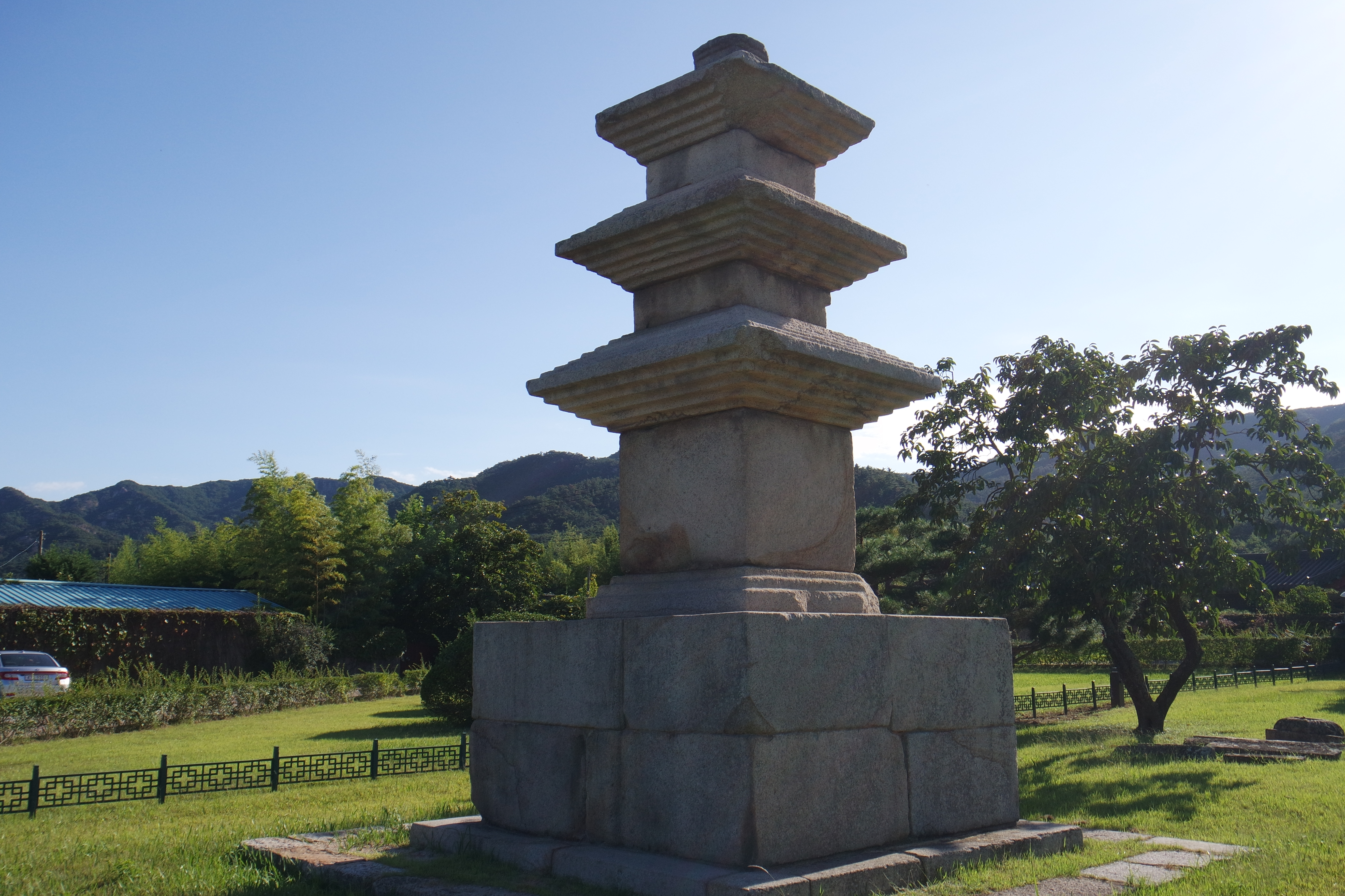 쌓고, 그 위에 몸돌을 얹은 후 지붕돌을 계단식으로 표현한 독특한 형태를 띠우고 있다.