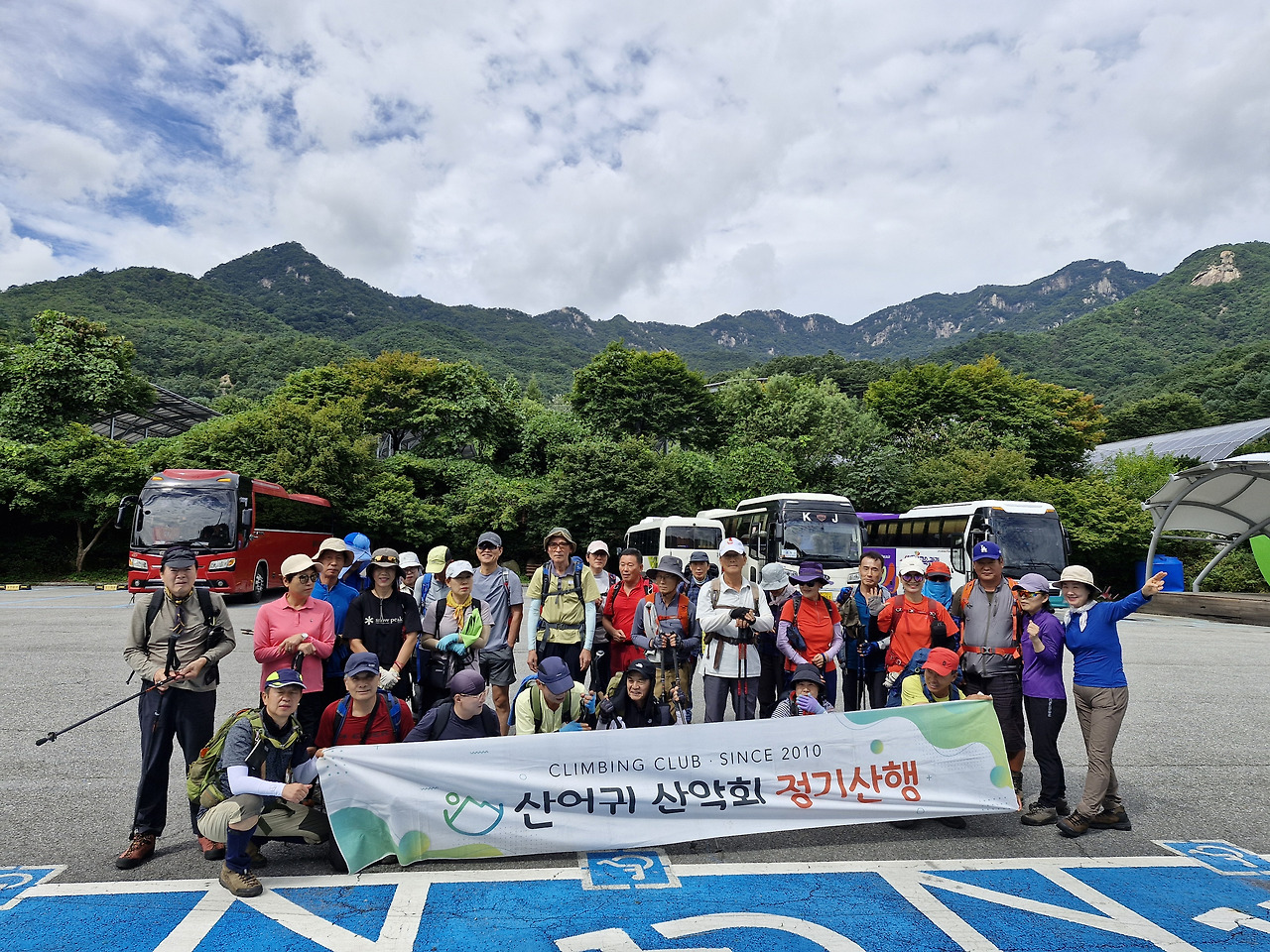 운악산 공영주차장 에서 단체사진.