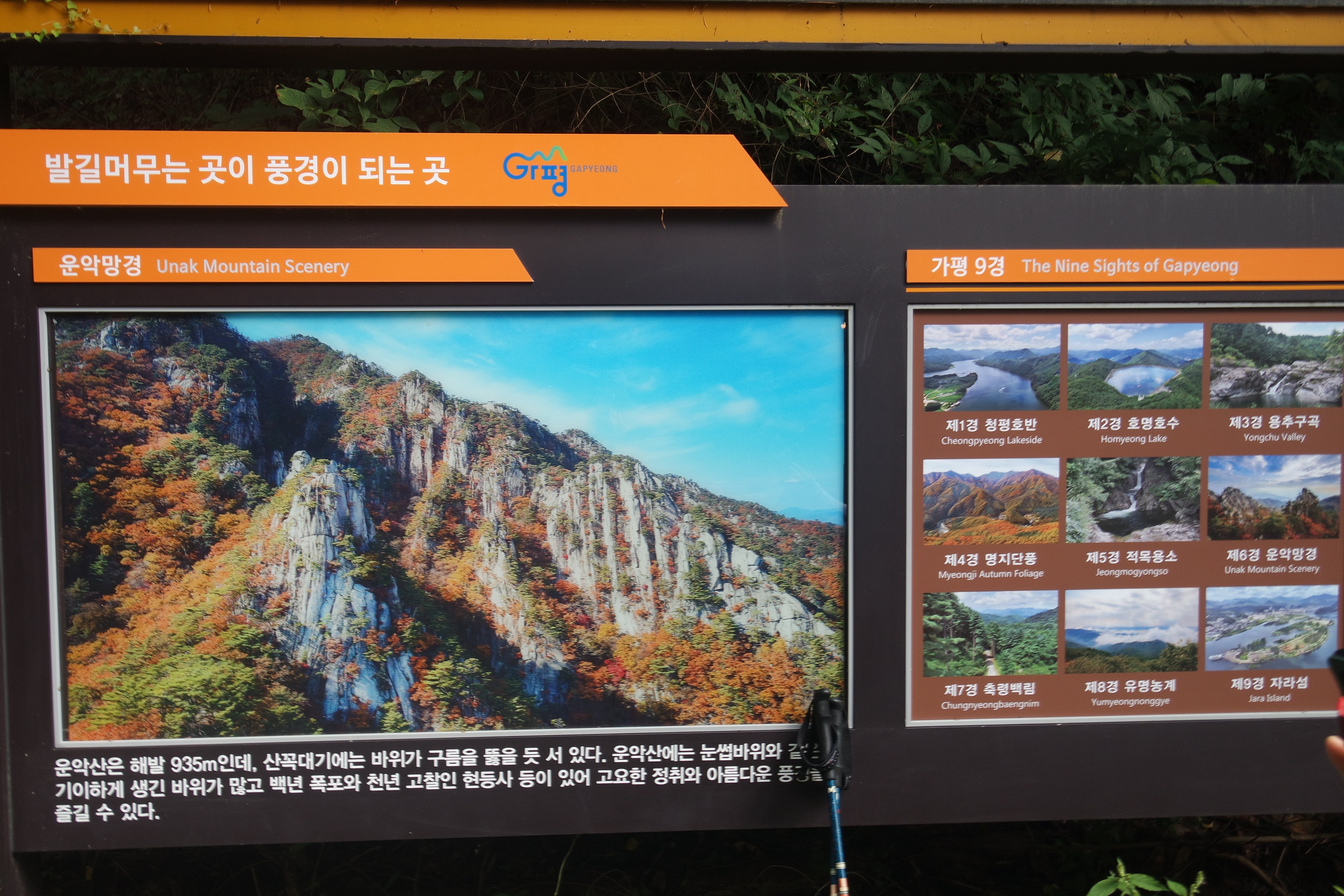 운악산과 가평9경 안내문.