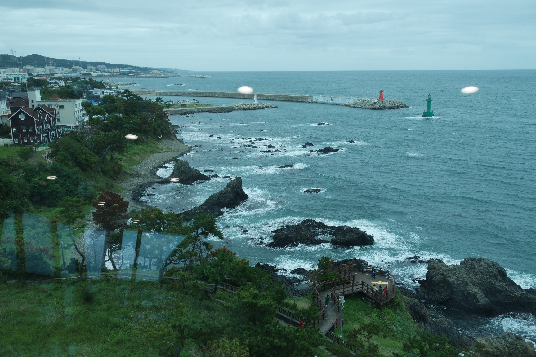 전망대 유리벽을 통해 바라 본 읍천항.