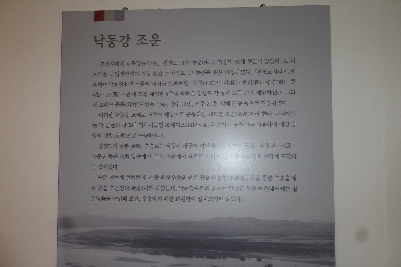 낙동강 조운, 각 지역의 공물을 조세로 거두어 해상으로 운송하는 제도를 조운이라 하며, 강을 통한 수송은 '수운창' 해상을 통한 수송은 '해운창' 조세미포를 모아서 농한기에 중앙의 '경창' 으로 수송하였다.