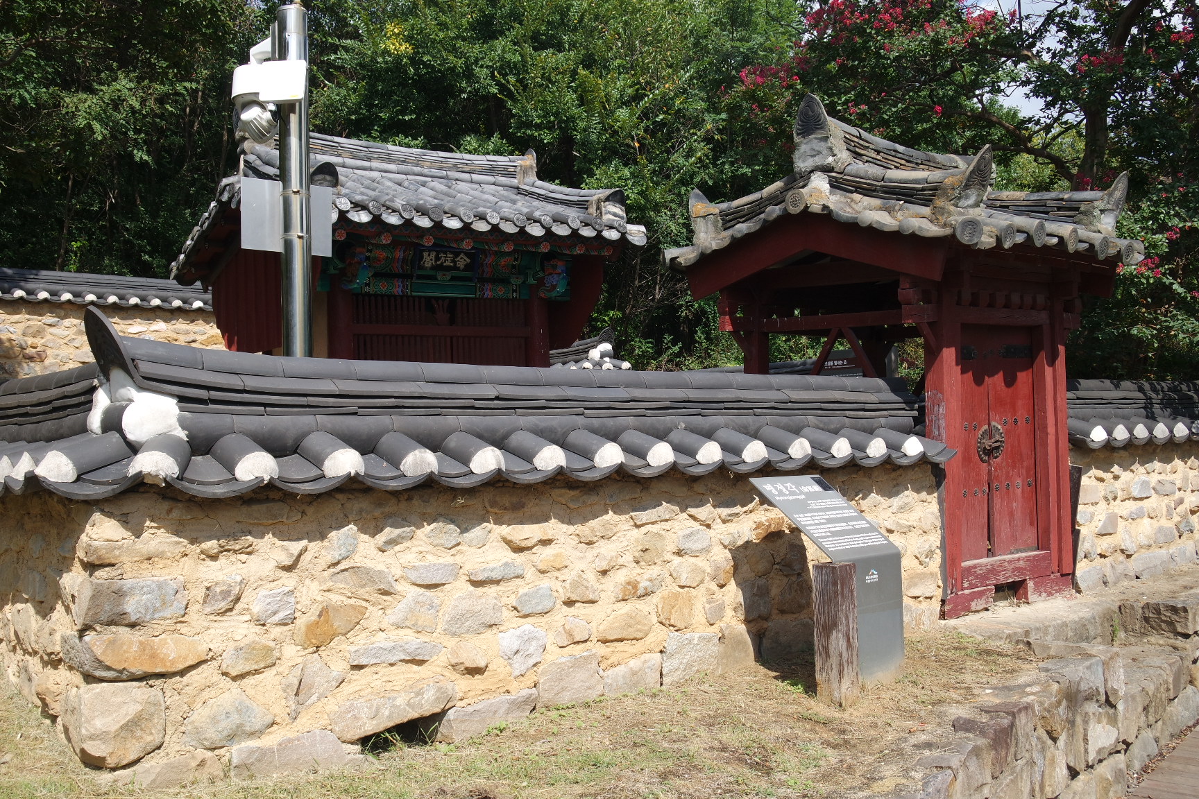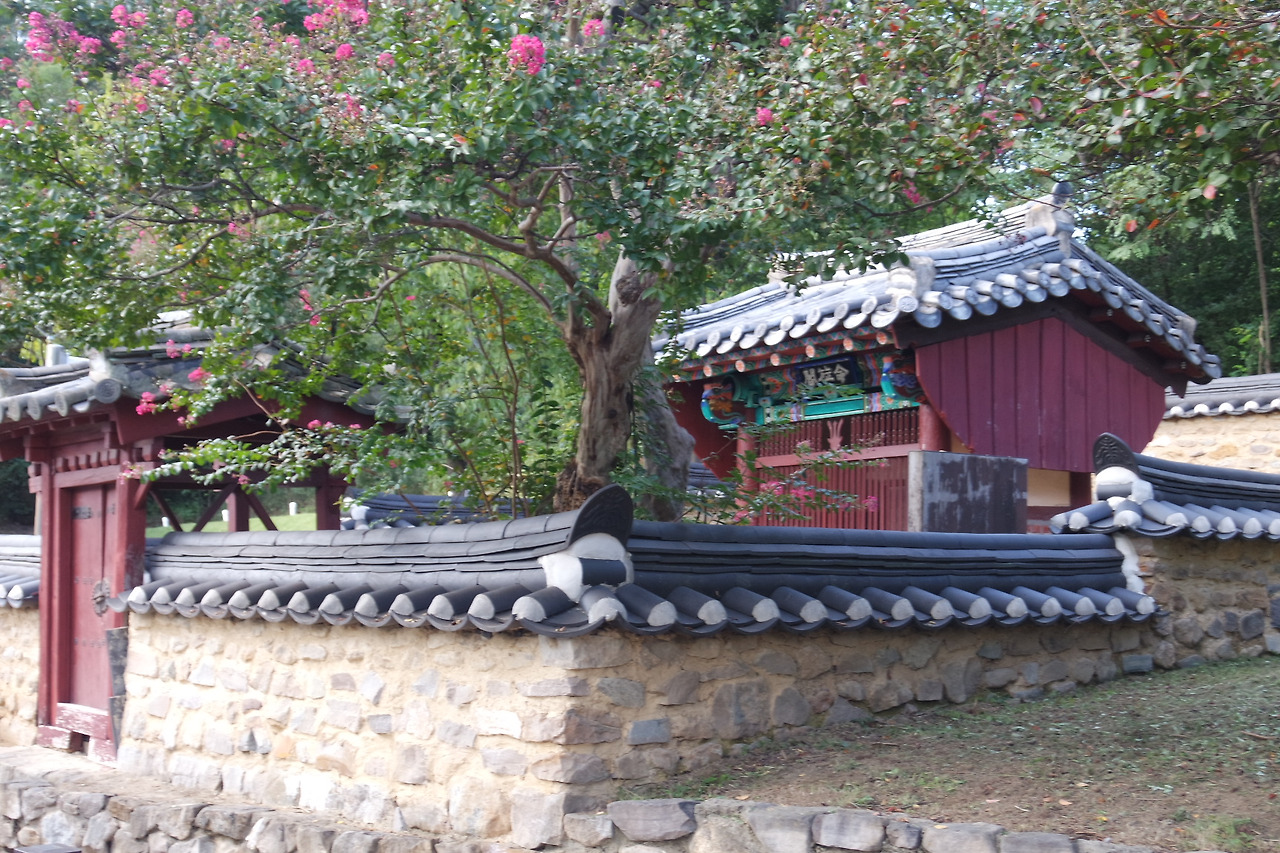 좌우 배롱나무와 석상이 지키고 있다.