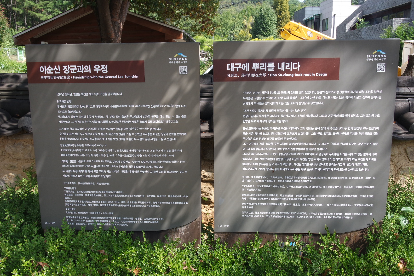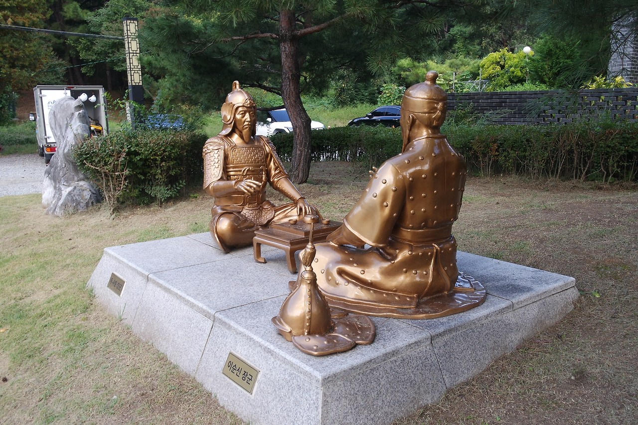두사충 장군과 이순신 장군 함께 술한잔하는 조형물.