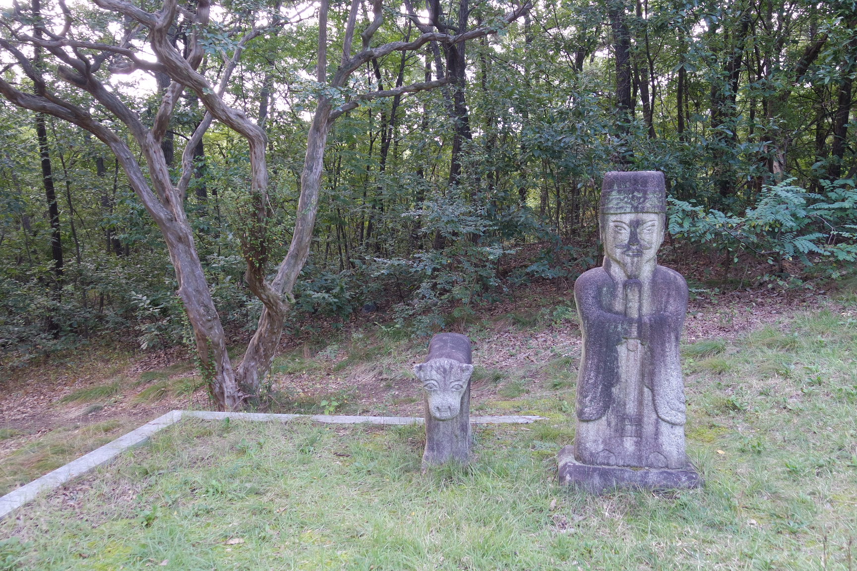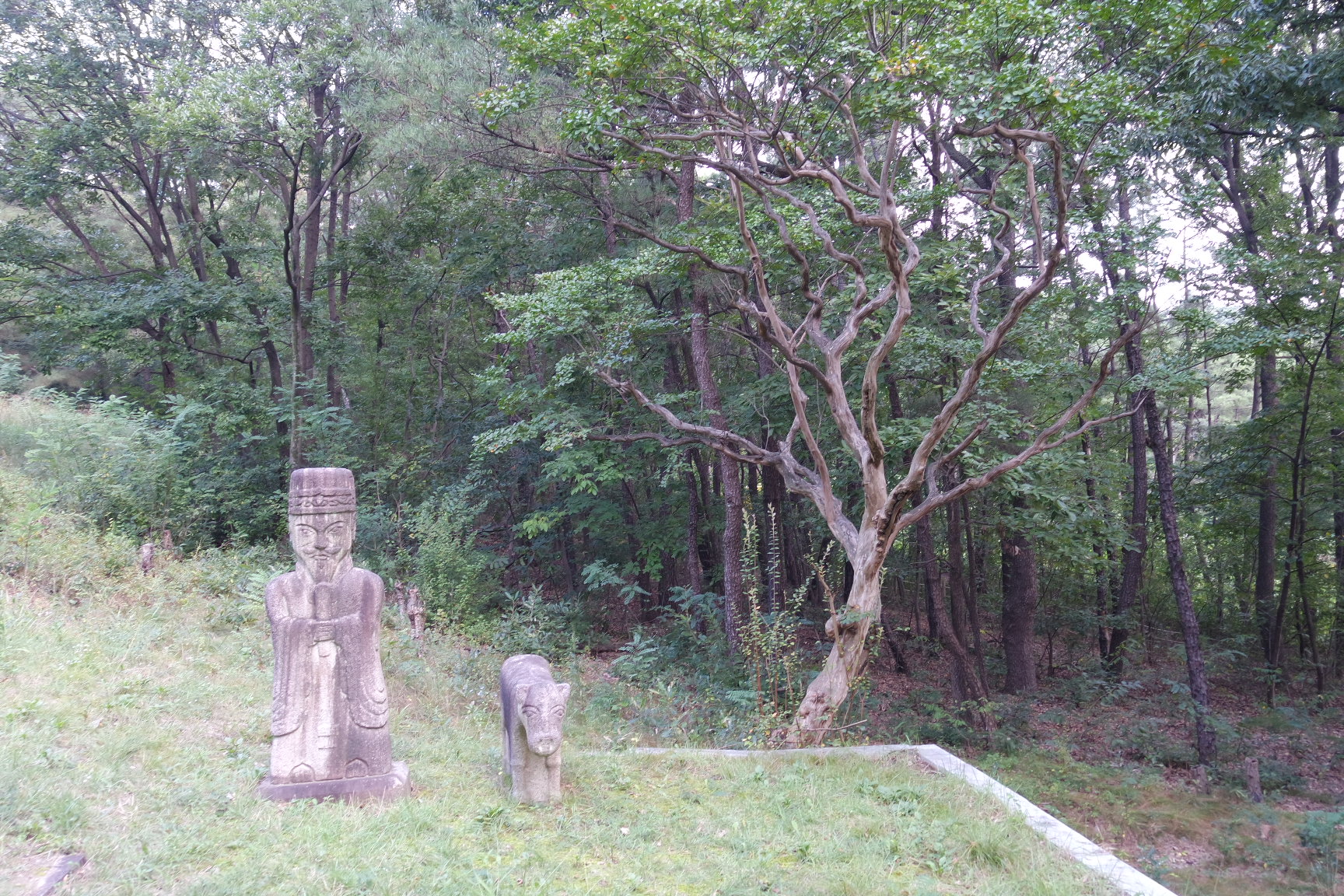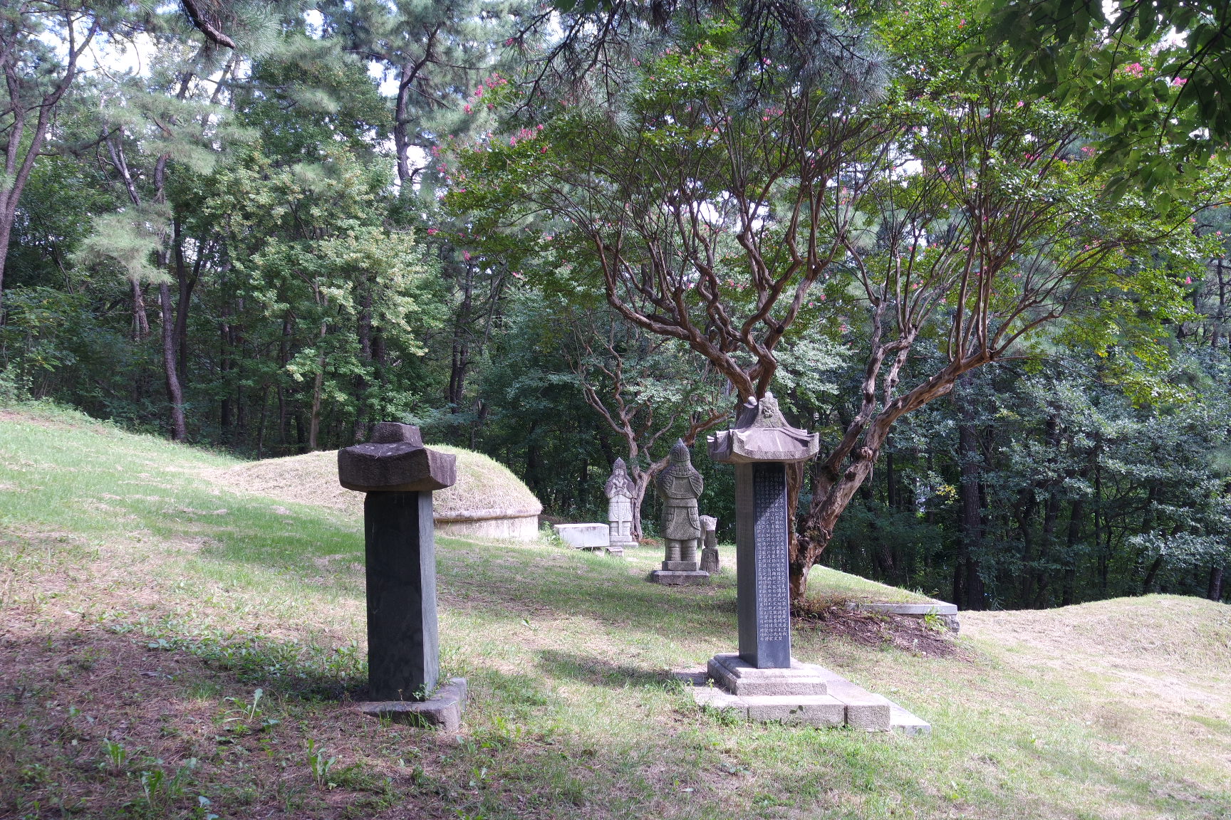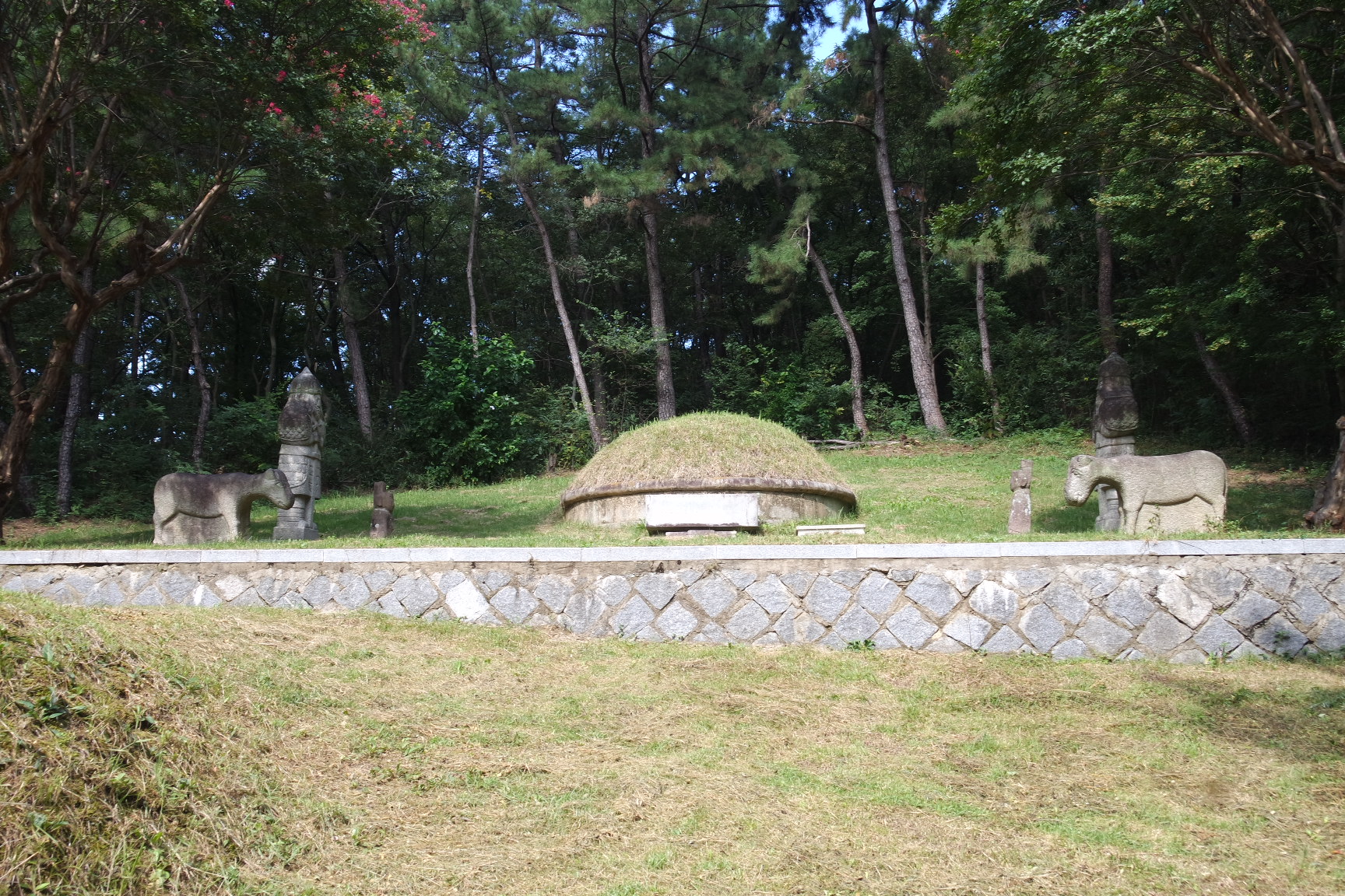 좌측에도 배롱나무, 장군석상,문인상, 동물상이 묘소를 지키고 있다.