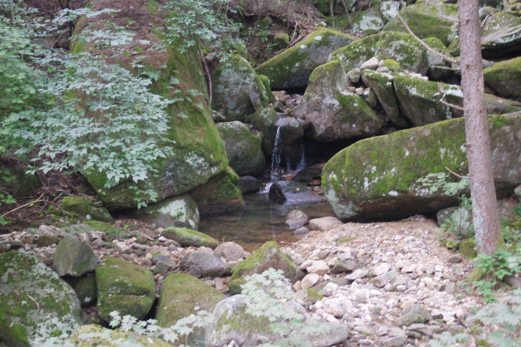 이끼낀 계곡의 돌무더기.