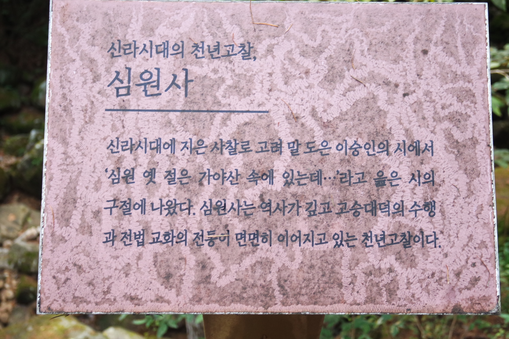 신라시대의 천년고찰 심원사 안내문.