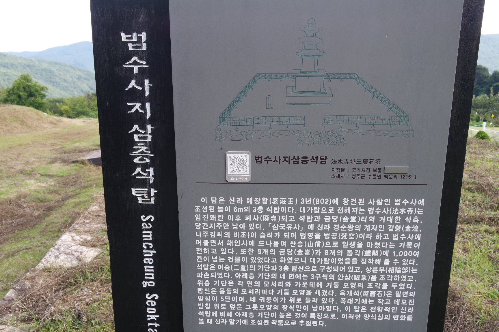 성주 법수사지 및 법수사지 삼층석탑 안내문.