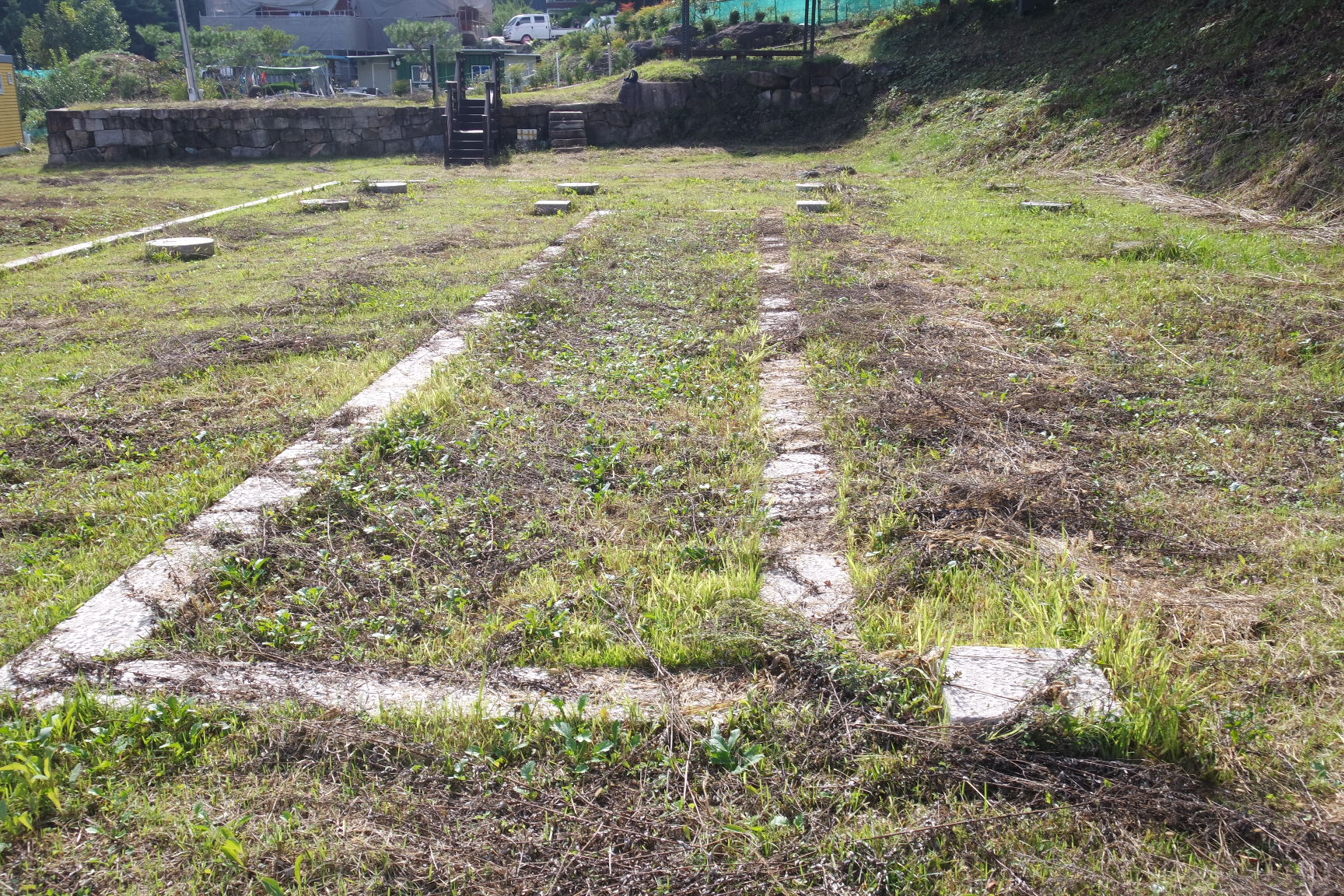 1호 건물지 주변에는 석축의 흔적이 남아있다.