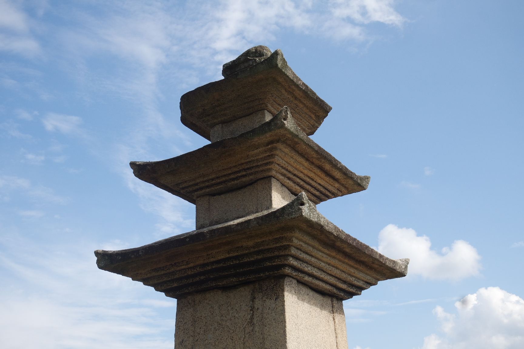 3층 옥개석의 상부에는 1단 노반 괴임을 각출하고 중앙에 원추형 찰주공을 뚫었다. 상륜부는 노반만 남아 있고 복발 이상의 상륜부는 없다.