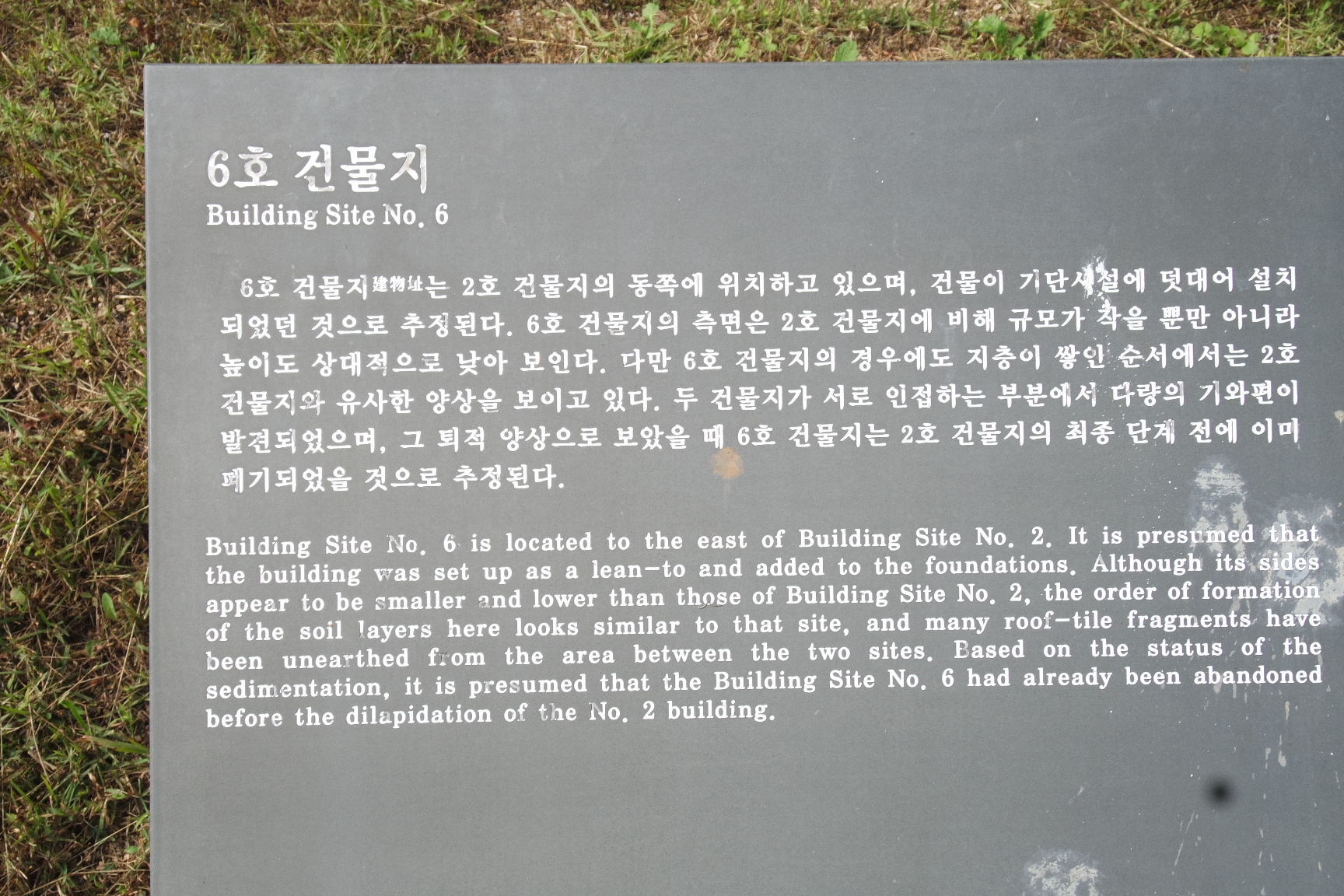 6호 건물지 안내문.