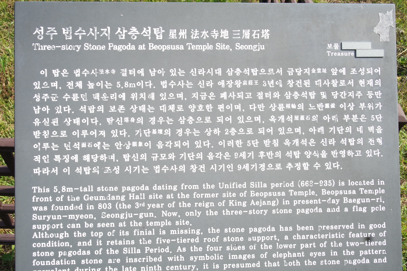 법수사지 삼층석탑 안내문.