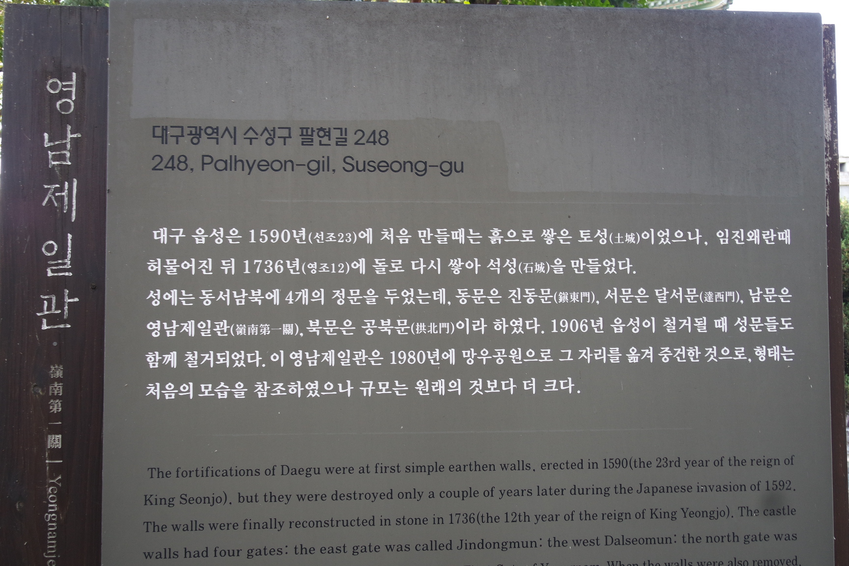 영남제일관 안내문.