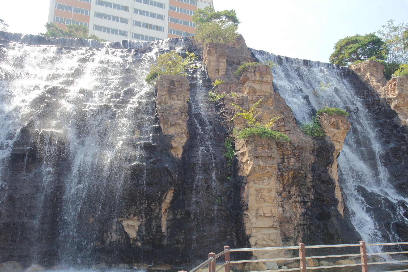 동구 효목동 구룡산 언덕에서 금호강으로 떨어지는 폭 35m 규모의 인공 암벽으로 만들어진 폭포이다.