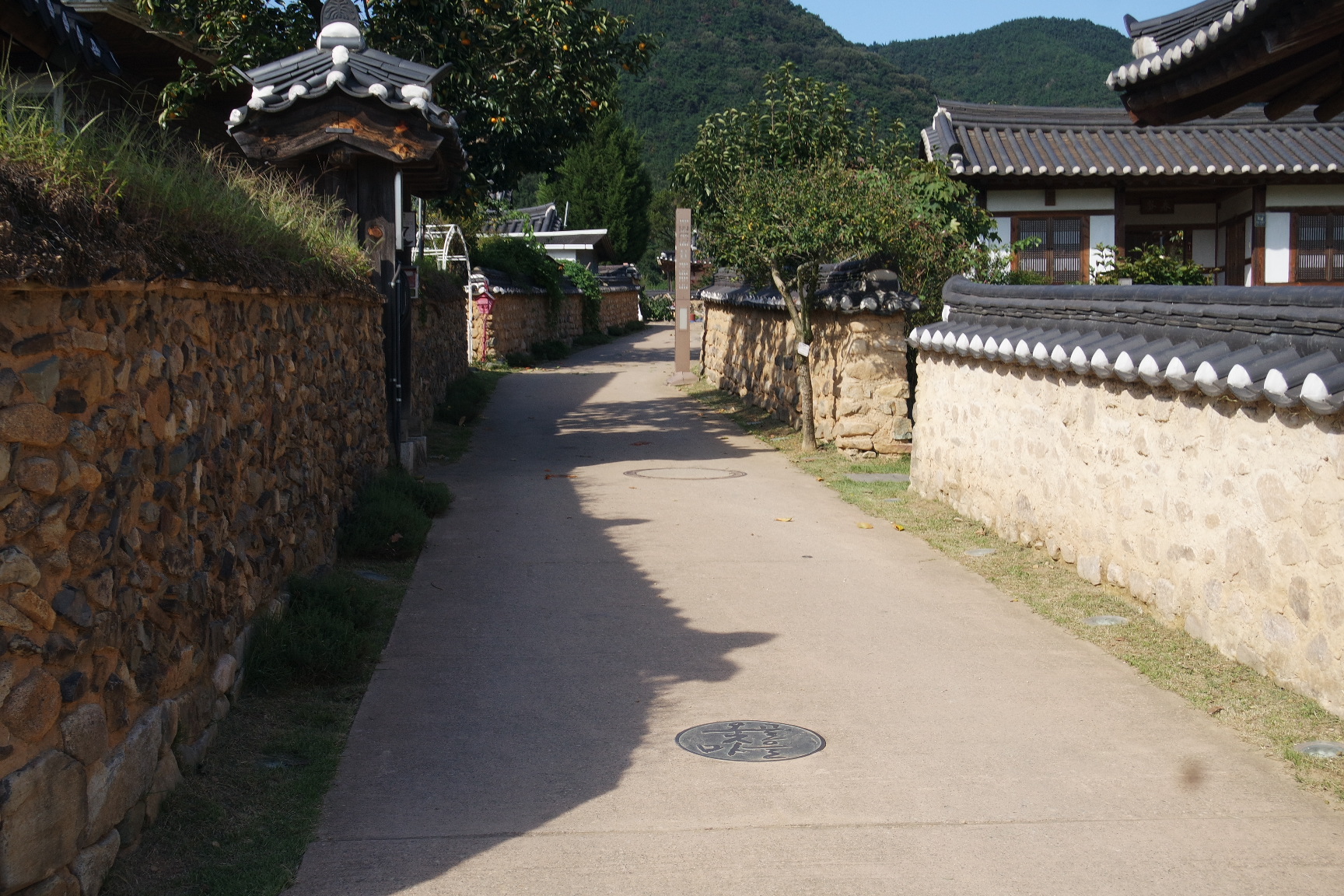 마을전체에 기와지붕을 얹은 돌담길이 2-3km 에 걸쳐 이어져 있다.