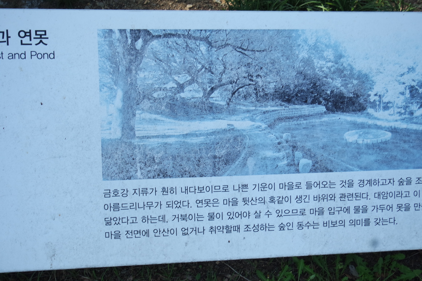 비보림 과 연못 조성 안내문.