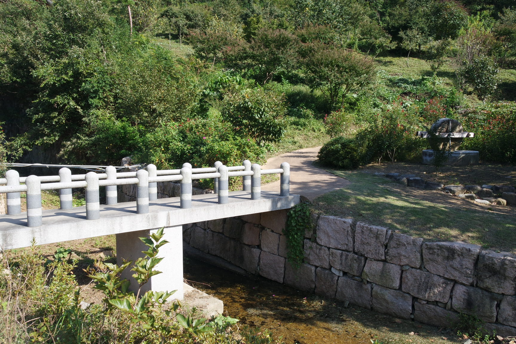 전망대 가는 석조다리와 연자방아.
