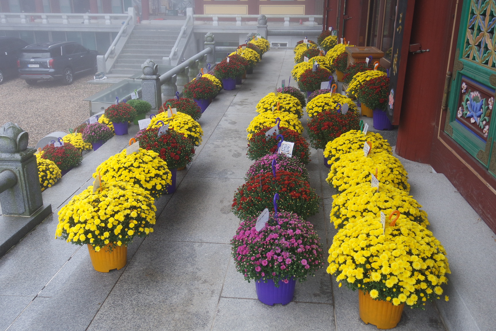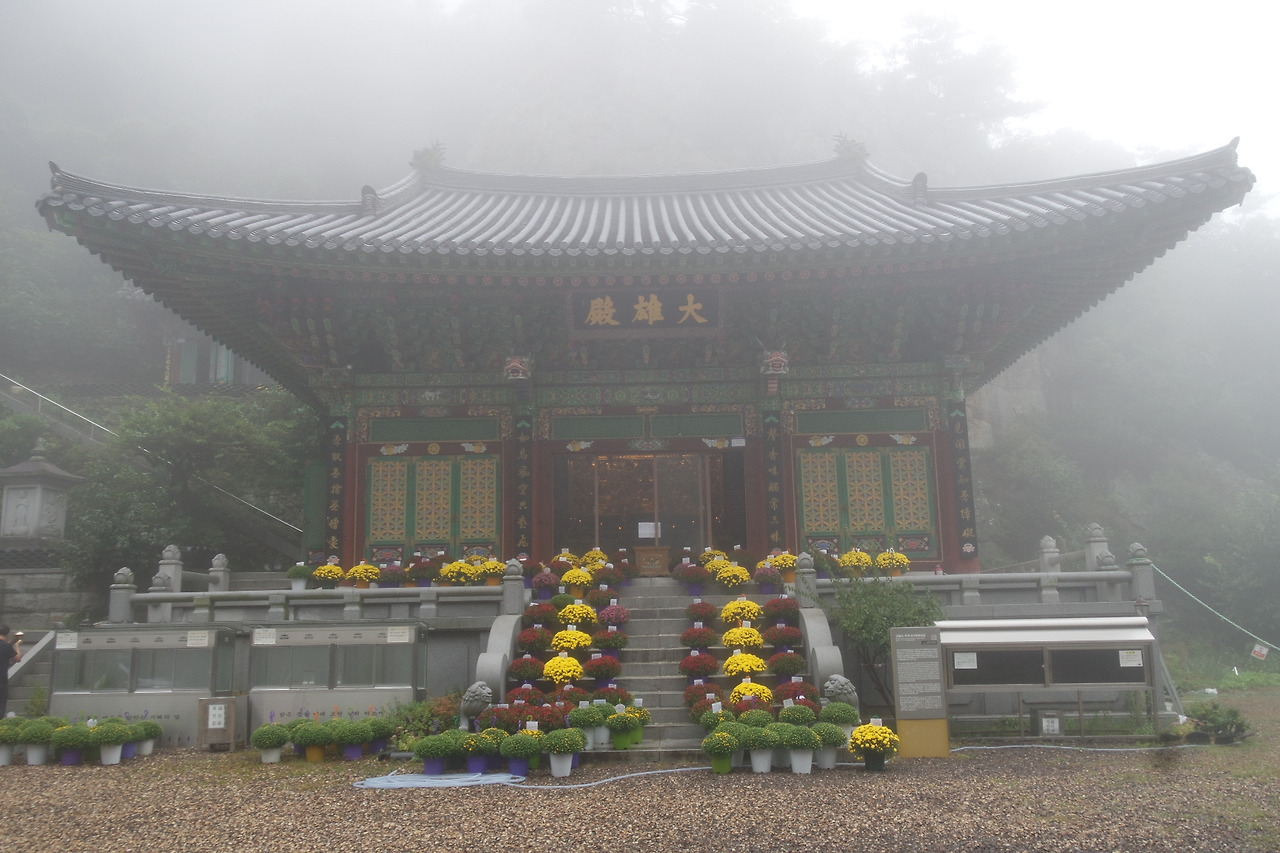 대웅전 앞 국화꽃 공양.