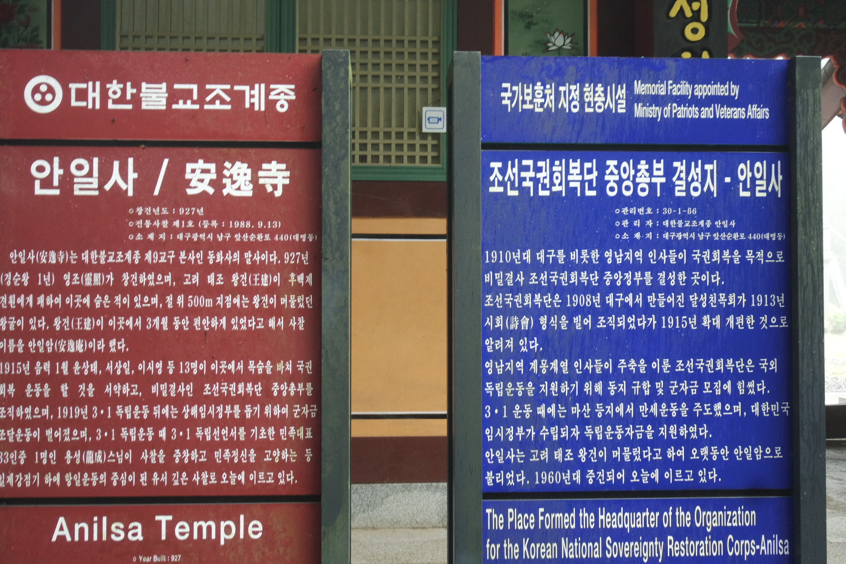 조선국권회복단 중앙총부 결성지-안일사 안내문.