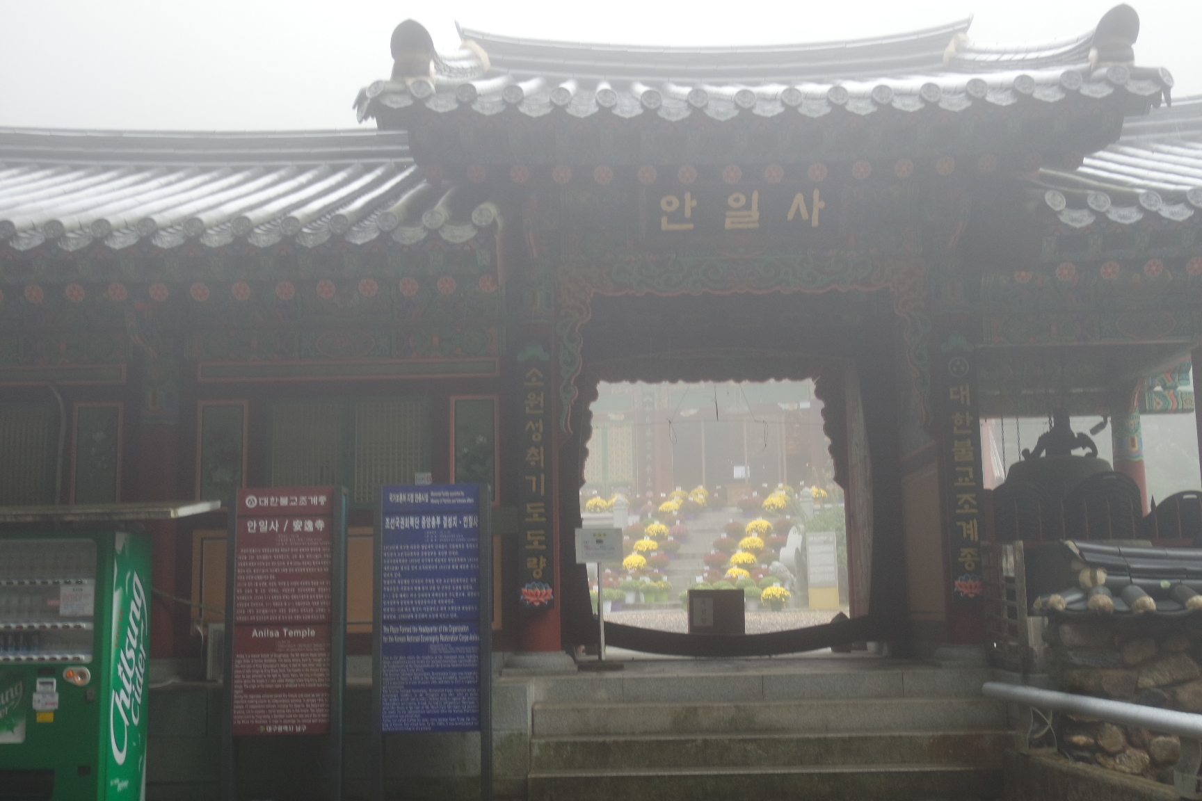 아침부터 가을비가 내려 시계가 흐리다 안일사 도착.