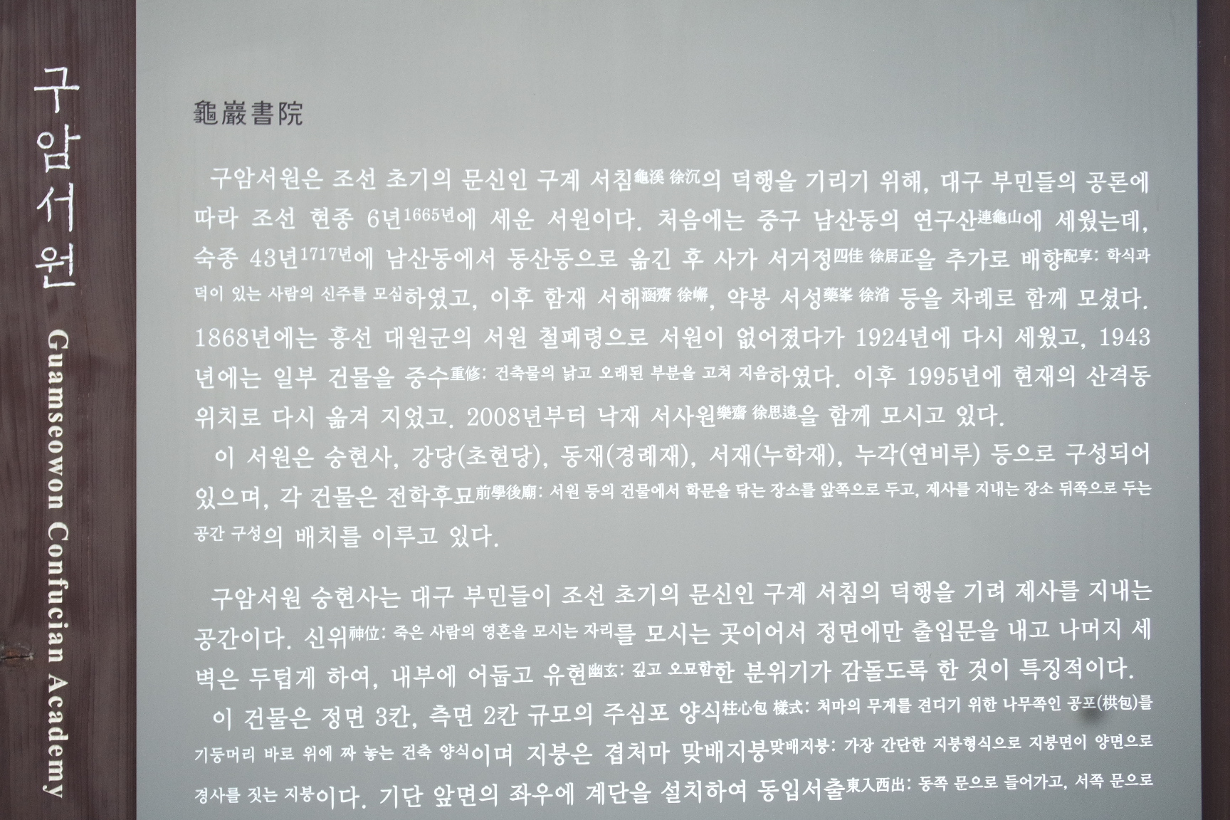 구암서원 안내문.