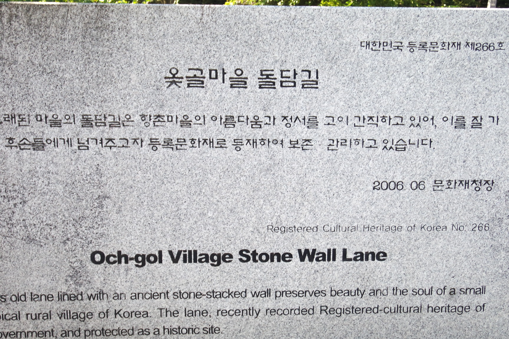 옻골마을 돌담길 안내문.