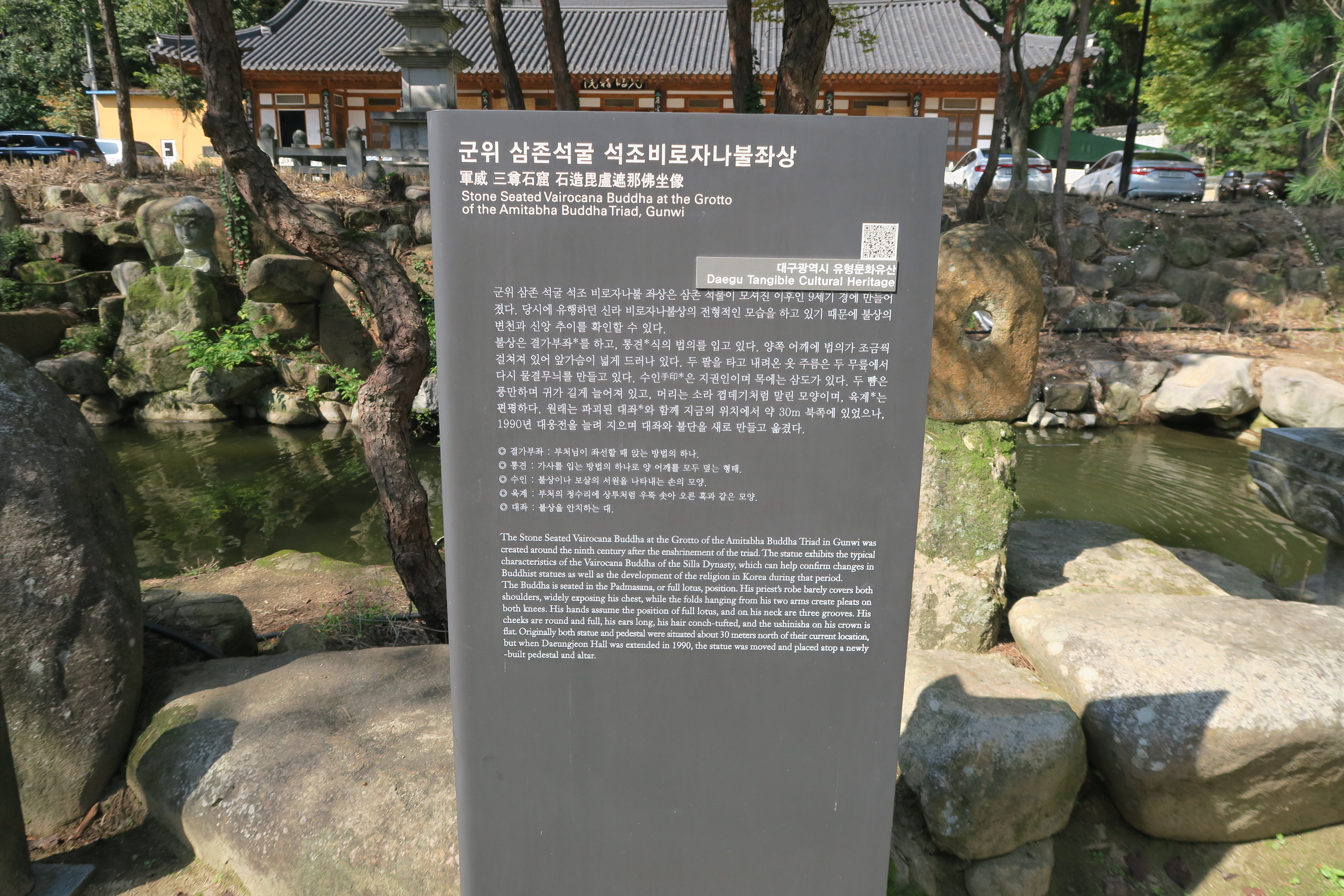 군위 삼존석굴 석조비로자나불 좌상 안내문.