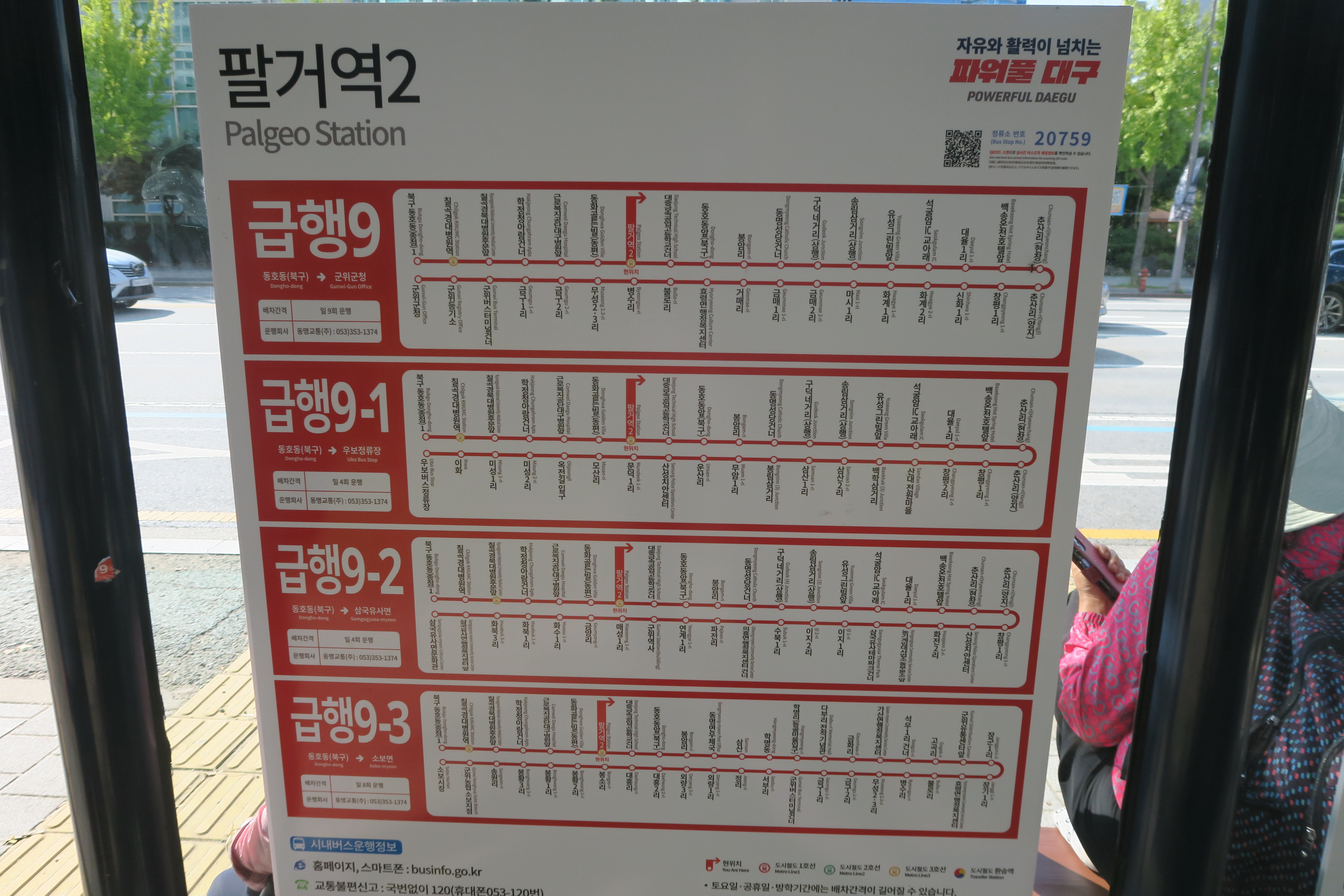 군위가는 급행9번, 9-1.2.3이 노선이 다르다. 10시15분가는 급행9번을 탑승.
