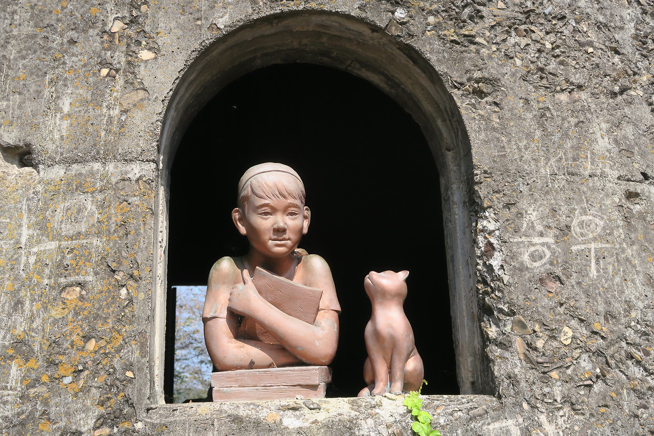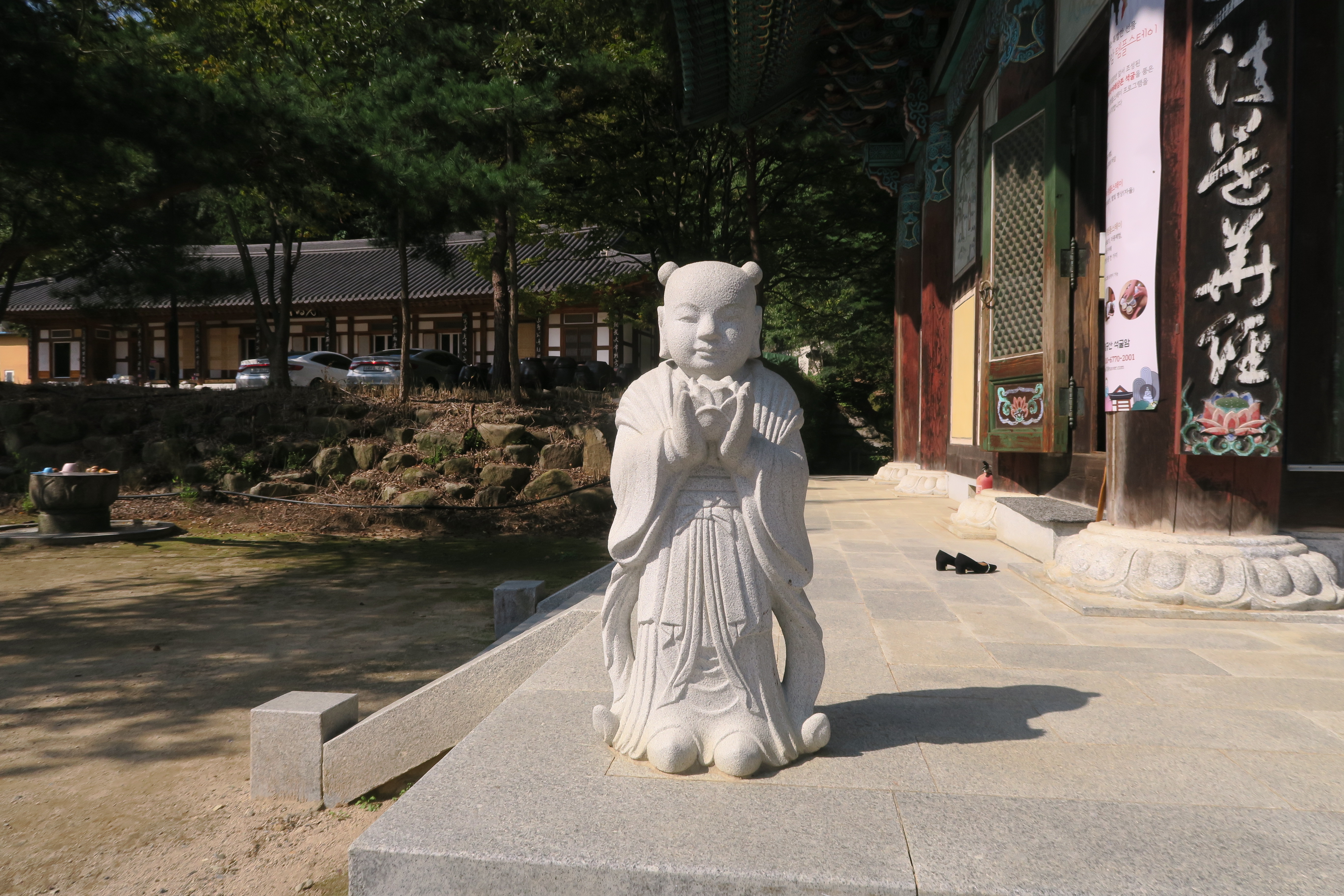 비로전 밖 연꽃을 든 동자상.