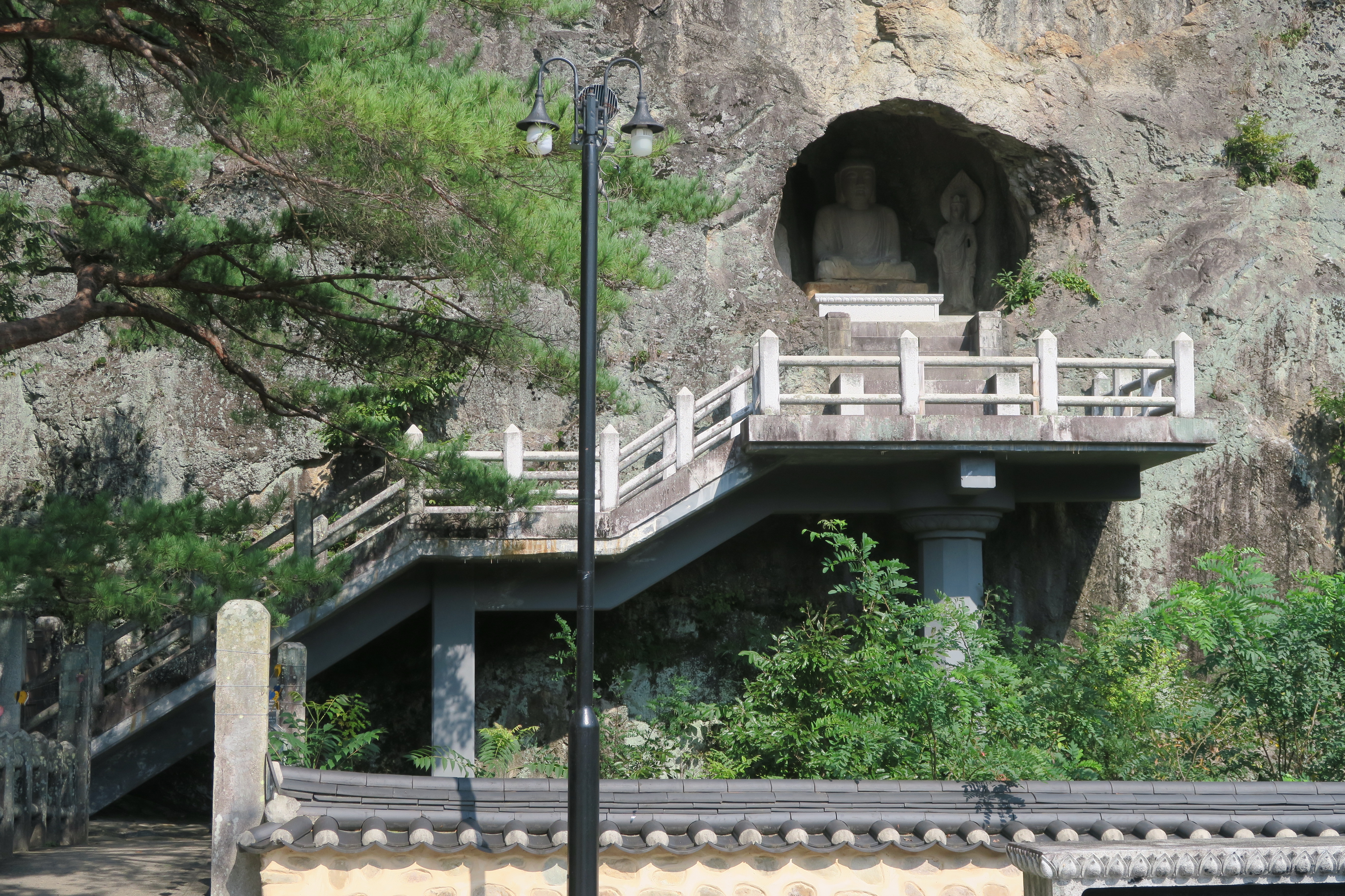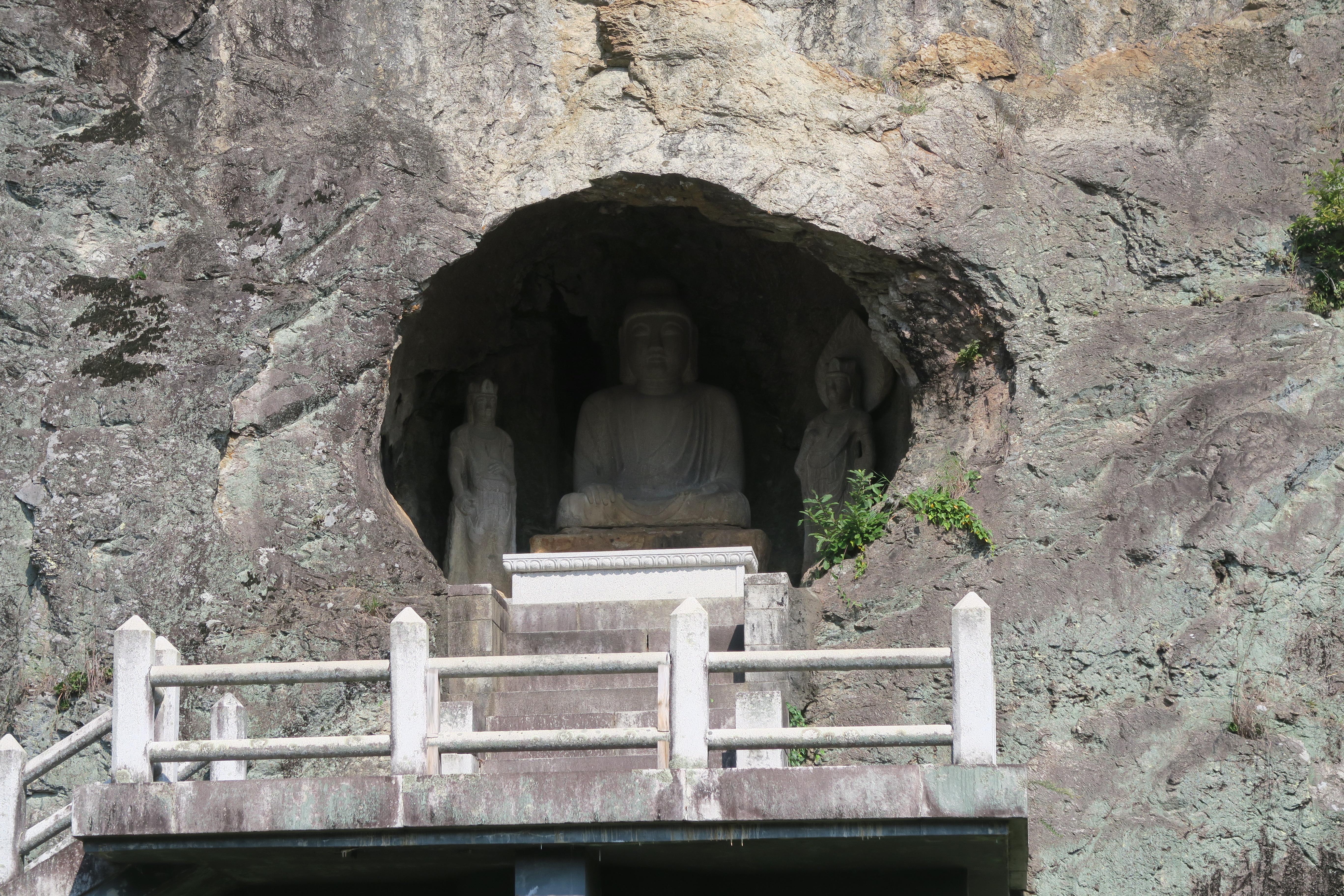 아미타여래 삼존석굴. 아미타불을 중심으로 좌우에 대세지보살과 관세음보살이 협시하고 있으며,경주 석굴암 보다 100년 앞서 만들어진 것으로 알려져 '제2석굴암'으로 불리고 있다.