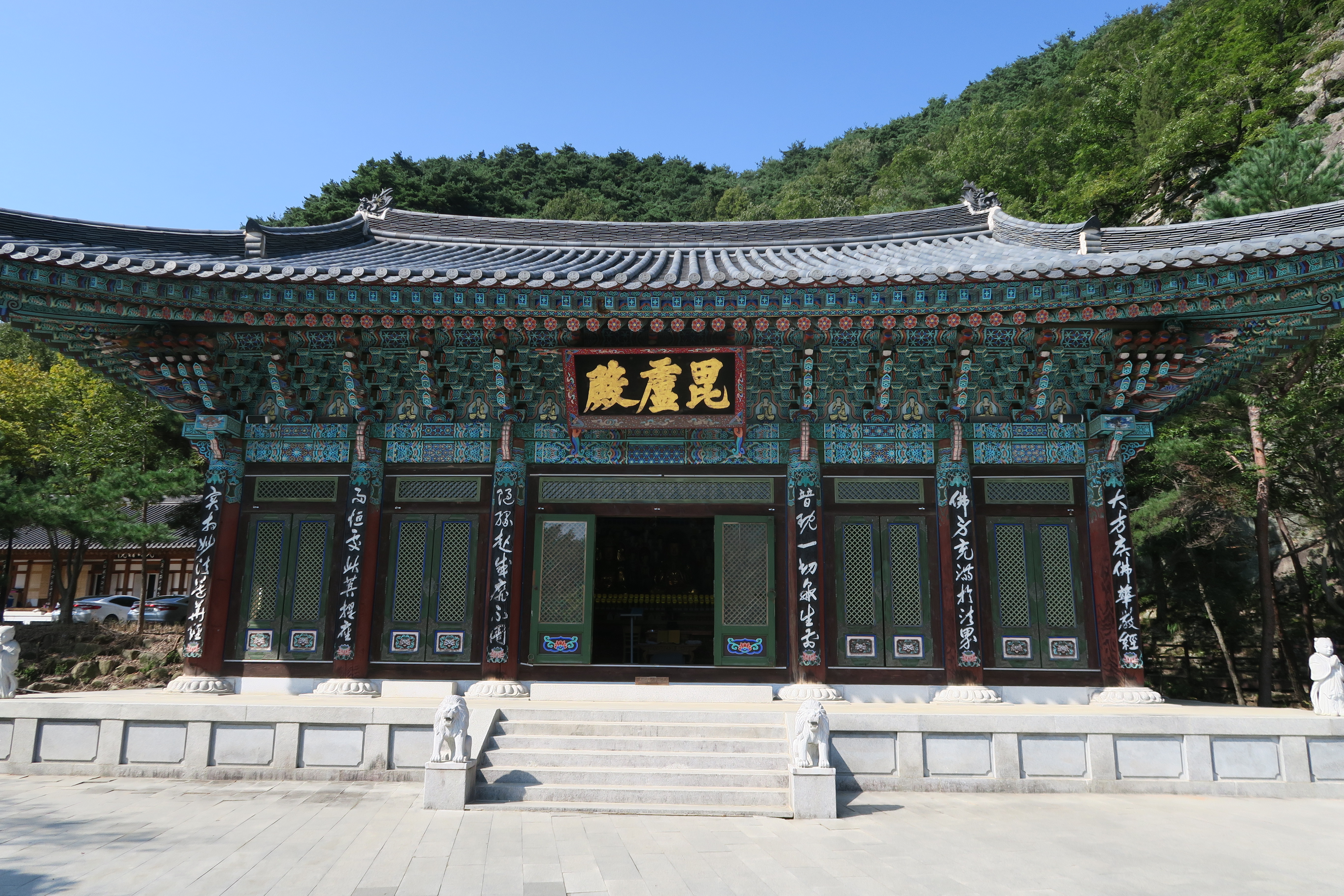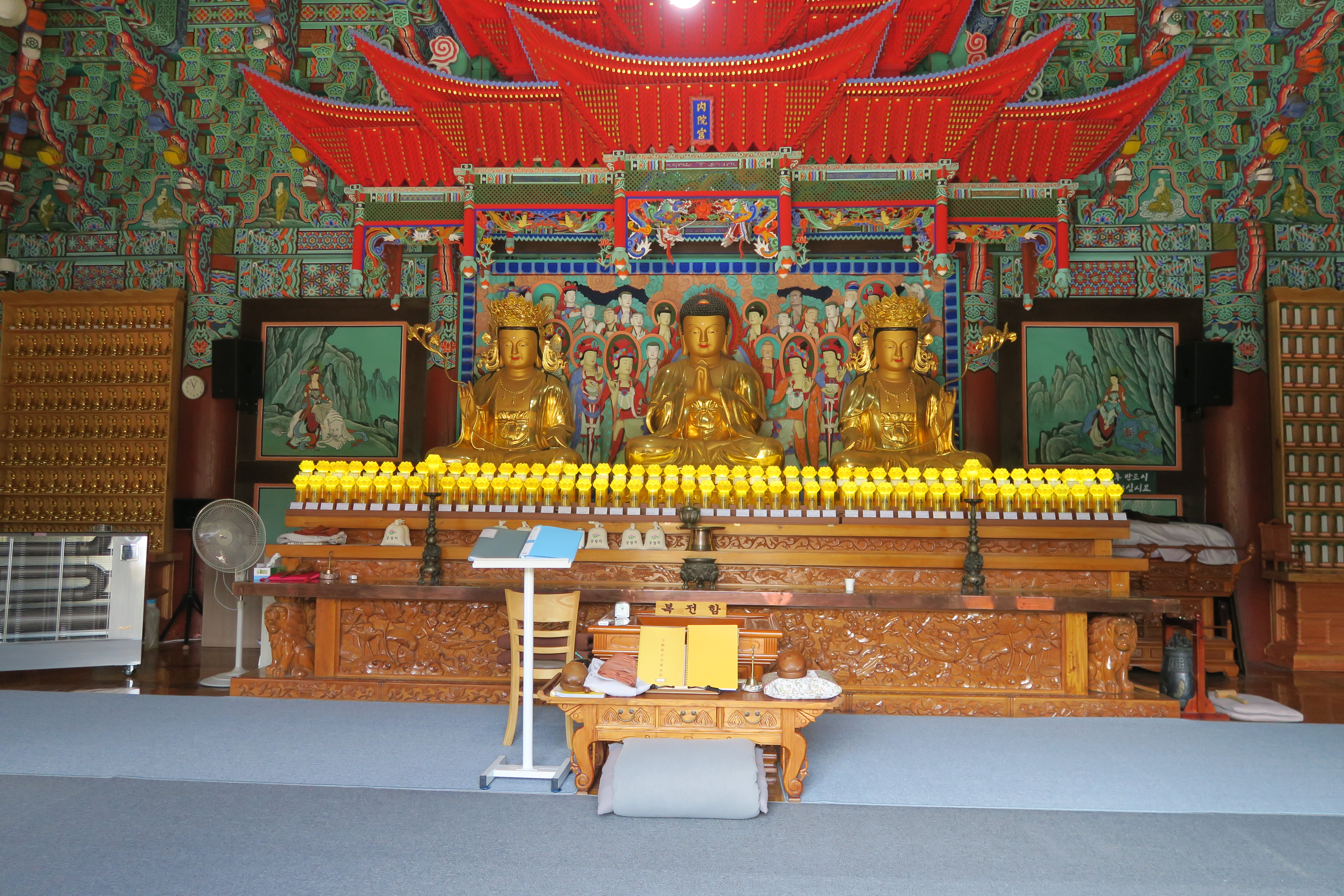 비로전 법당안의 비로자나불과 좌우협시 보살이 봉안 되어 있다.
