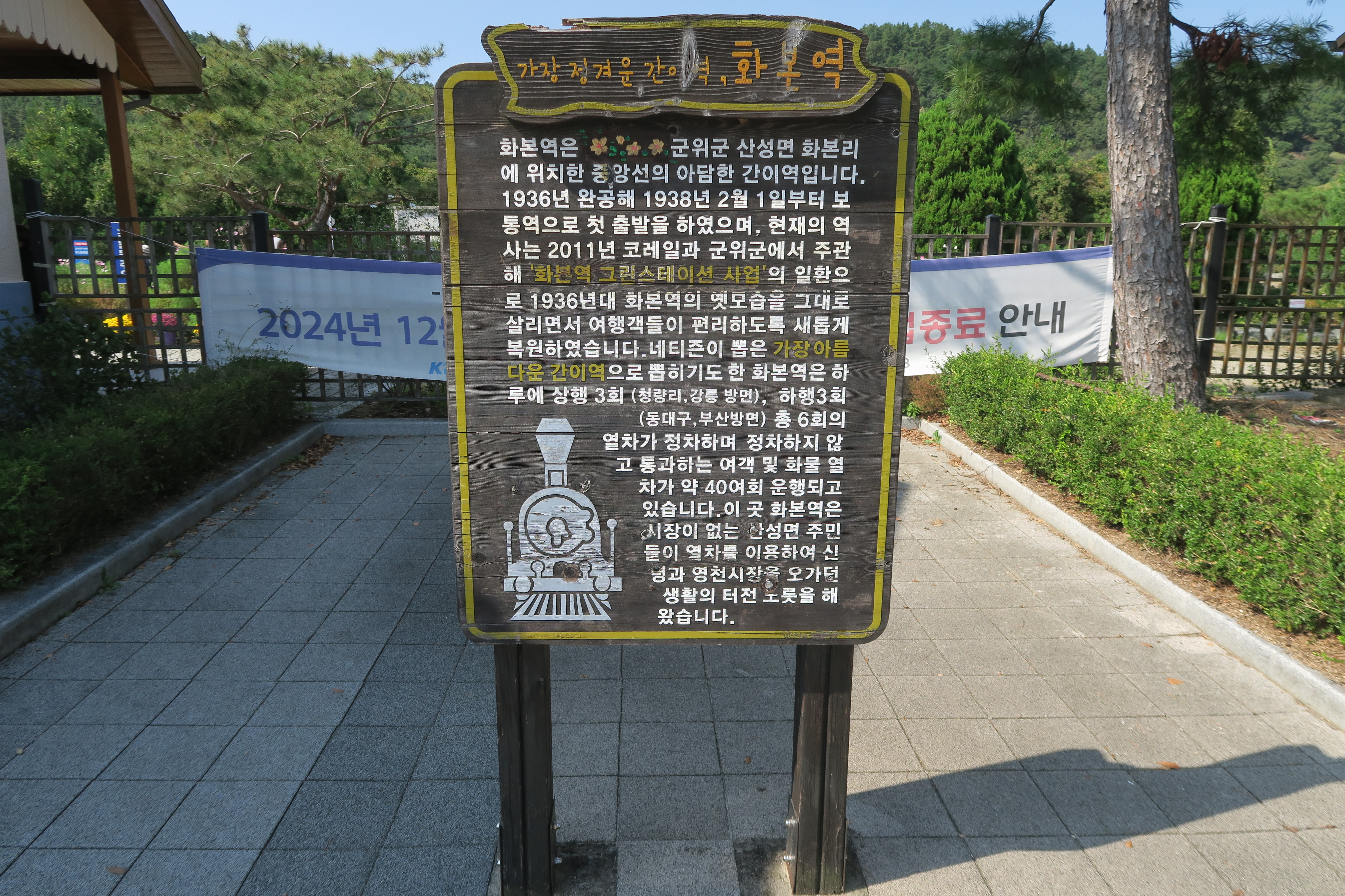 화본역 영업종료 안내 현수막.