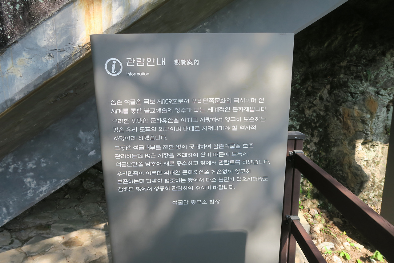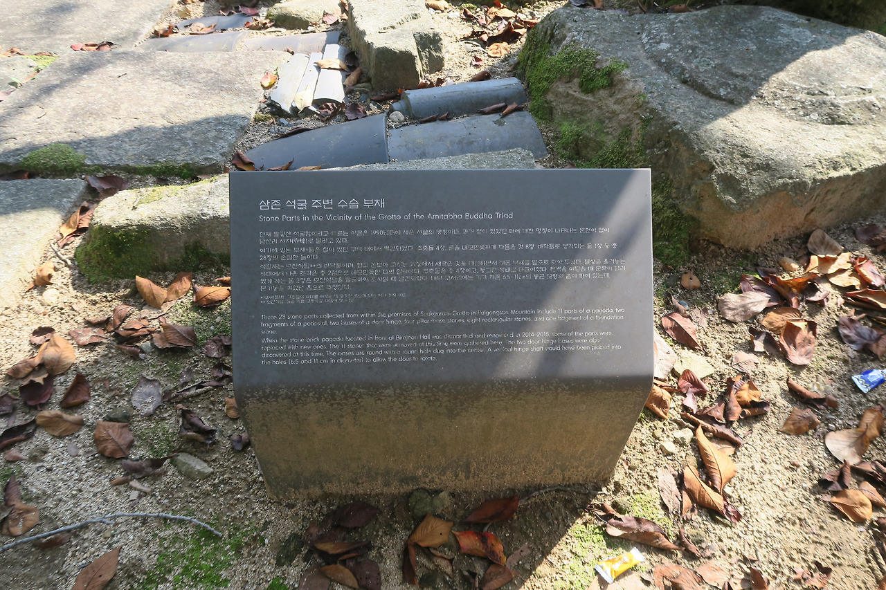 삼존석굴 주변 수습 부재 안내문.