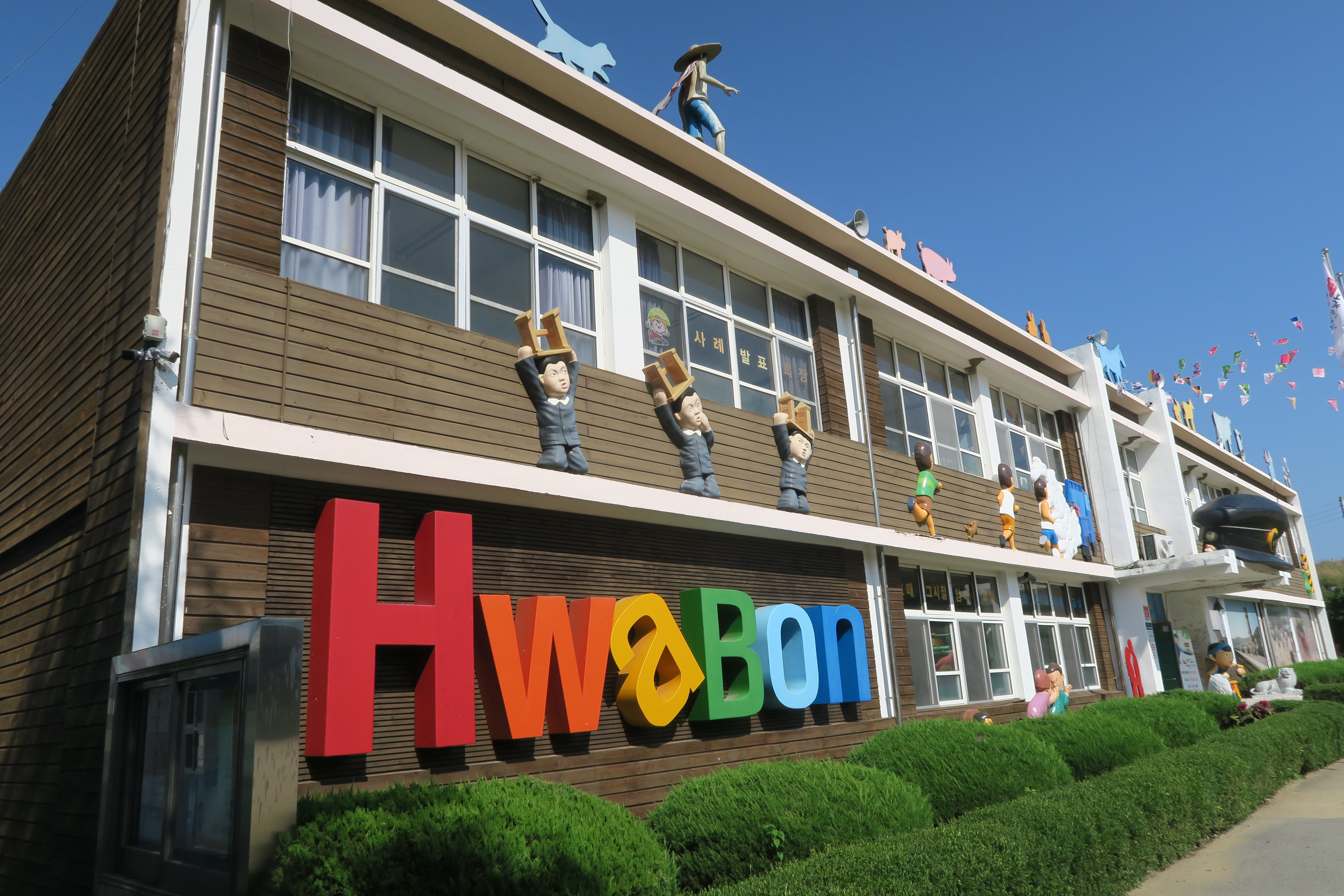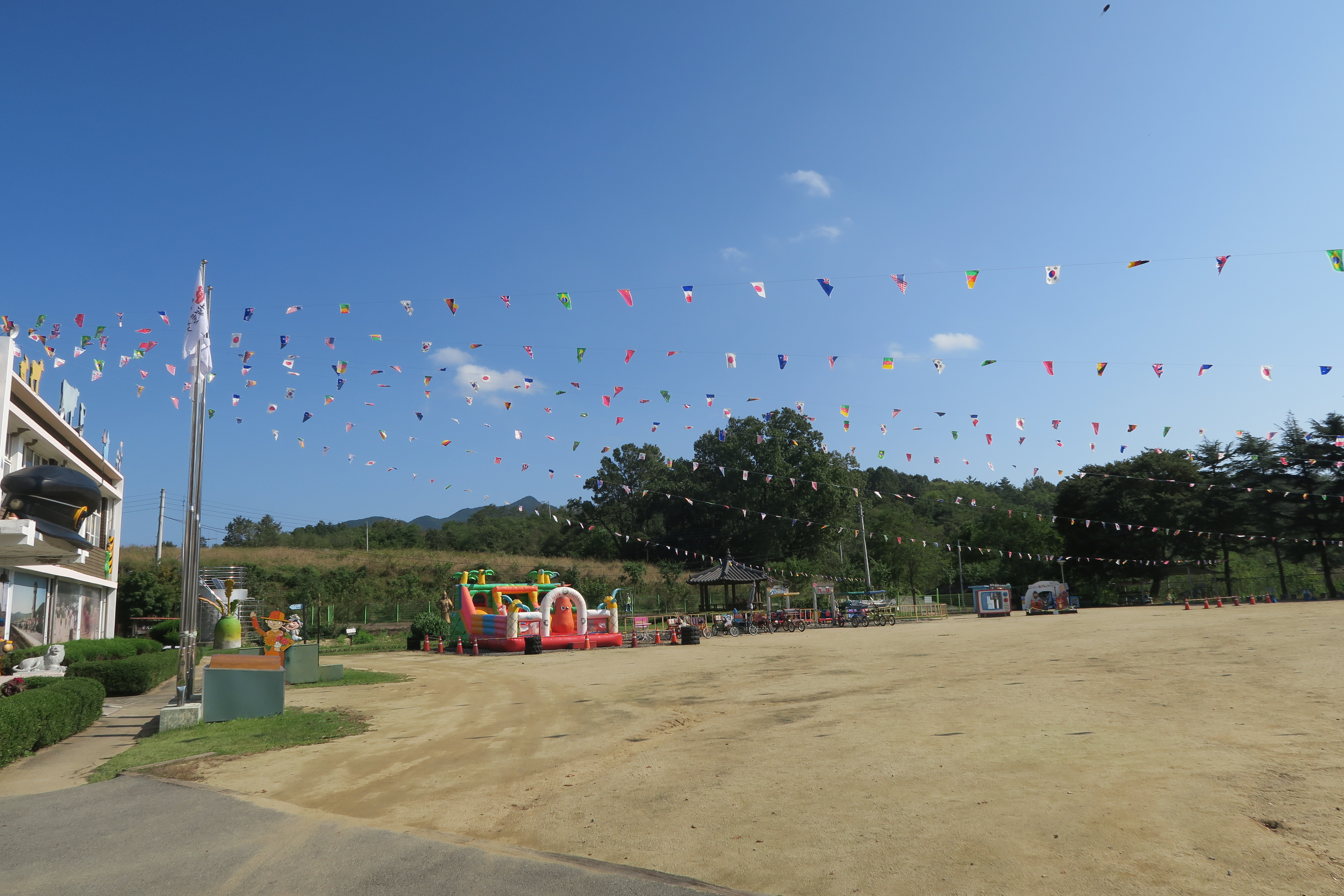 넓은 운동장에 만국기와 어릴적생활을 추억하고 체험할 수 있는 곳이기도 하면서 화본마을 사람들의 정과 따뜻한 이야기도 있는 곳이라고 한다.